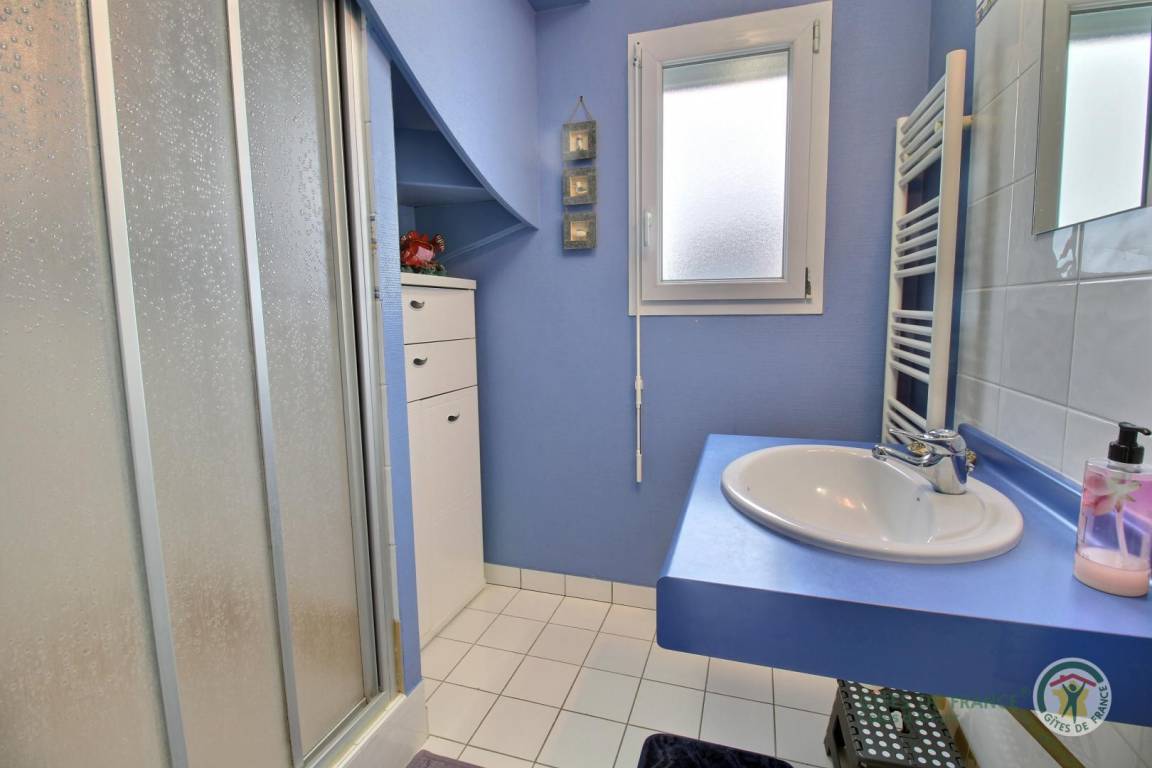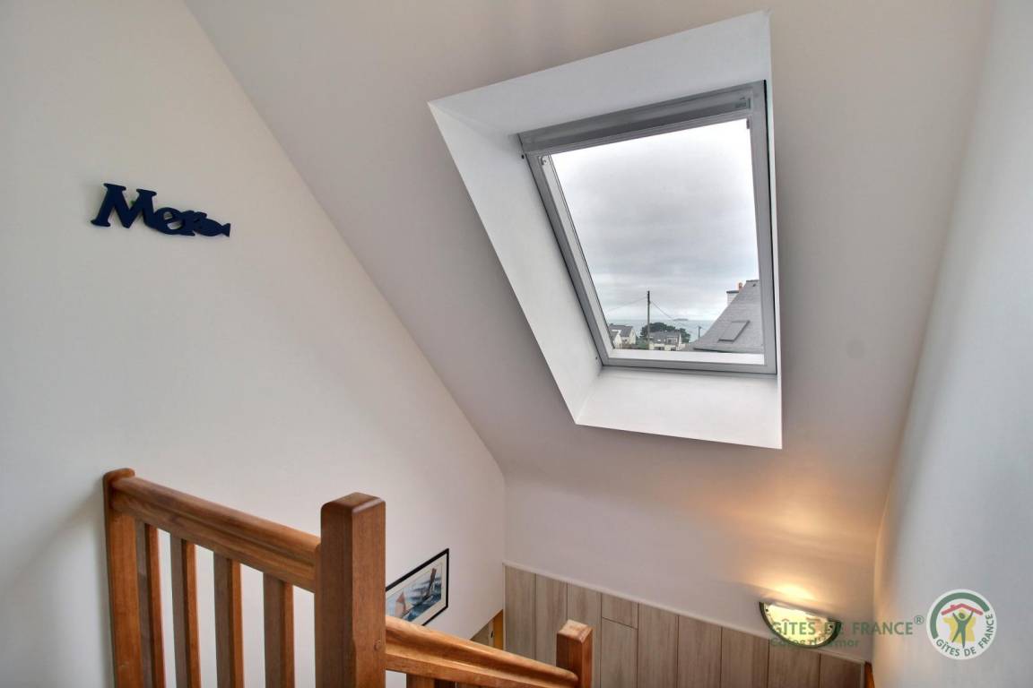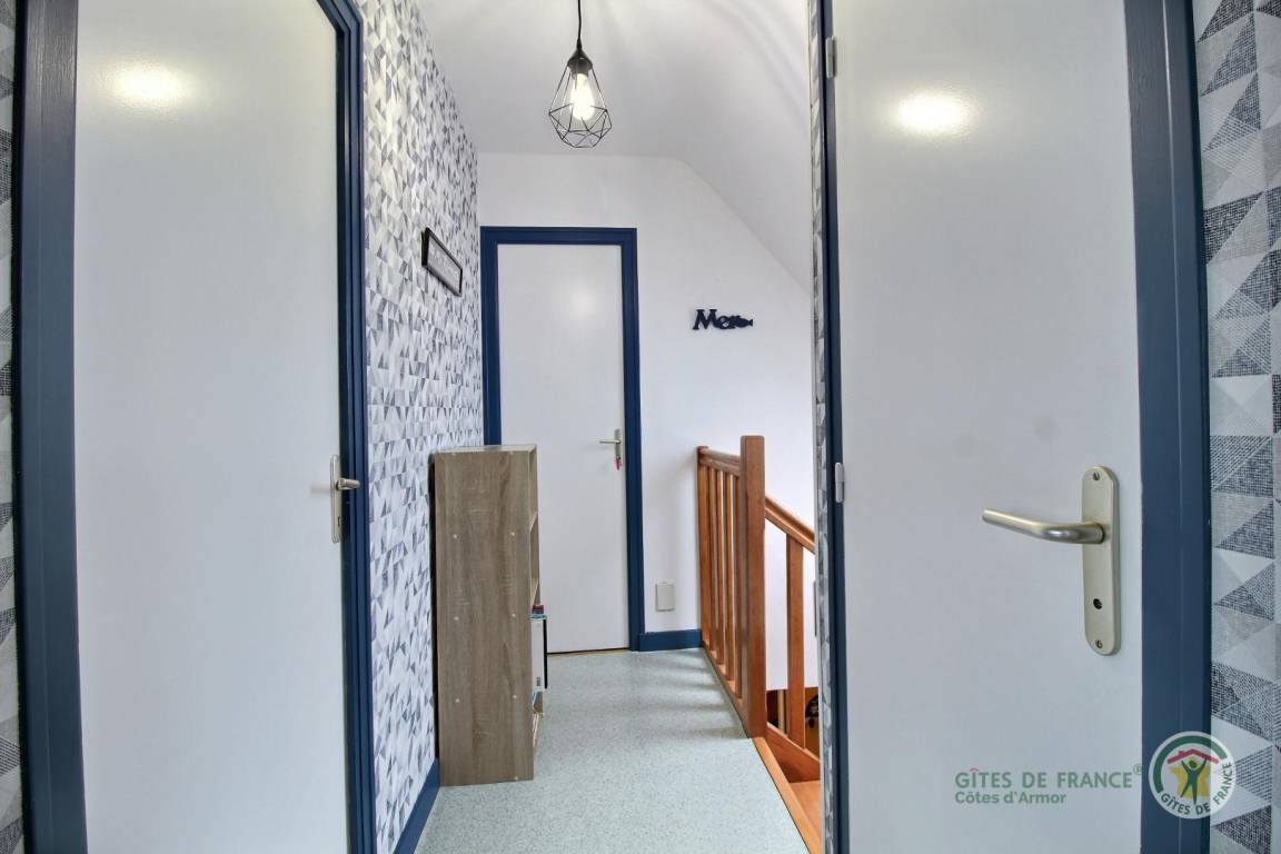 Ihre Ferienwohnung umfasst im Erdgeschoss: Einbauküche, Hauswirtschaftsraum, Wohnzimmer mit Zugang zu einer Veranda, Wohnzimmer, Schlafzimmer (1 Doppelbett 160x200), Badezimmer mit Dusche, WC. Obergeschoss: eine Landung mit Meerblick, die zu 2 Schlafzimmern führt (1 Doppelbett 140x190), (2 Einzelbetten 90x190), Badezimmer (mit Meerblick) mit Badewanne, WC. Zu Ihrer Verfügung: eine 13 m² große Terrasse, ein eingezäunter 500 m² großer Privatgarten. Parken Ihrer Fahrzeuge im Hof (300 m²) privat und geschlossen.