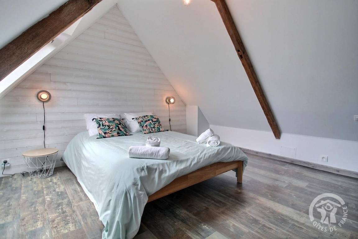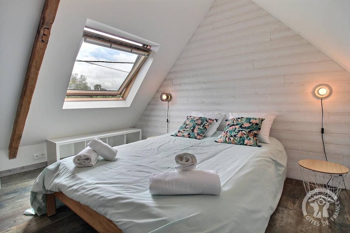 - Obergeschoss: ein Schlafzimmer mit Zugang zu einem Zwischengeschoss (1 140x190-Bett)