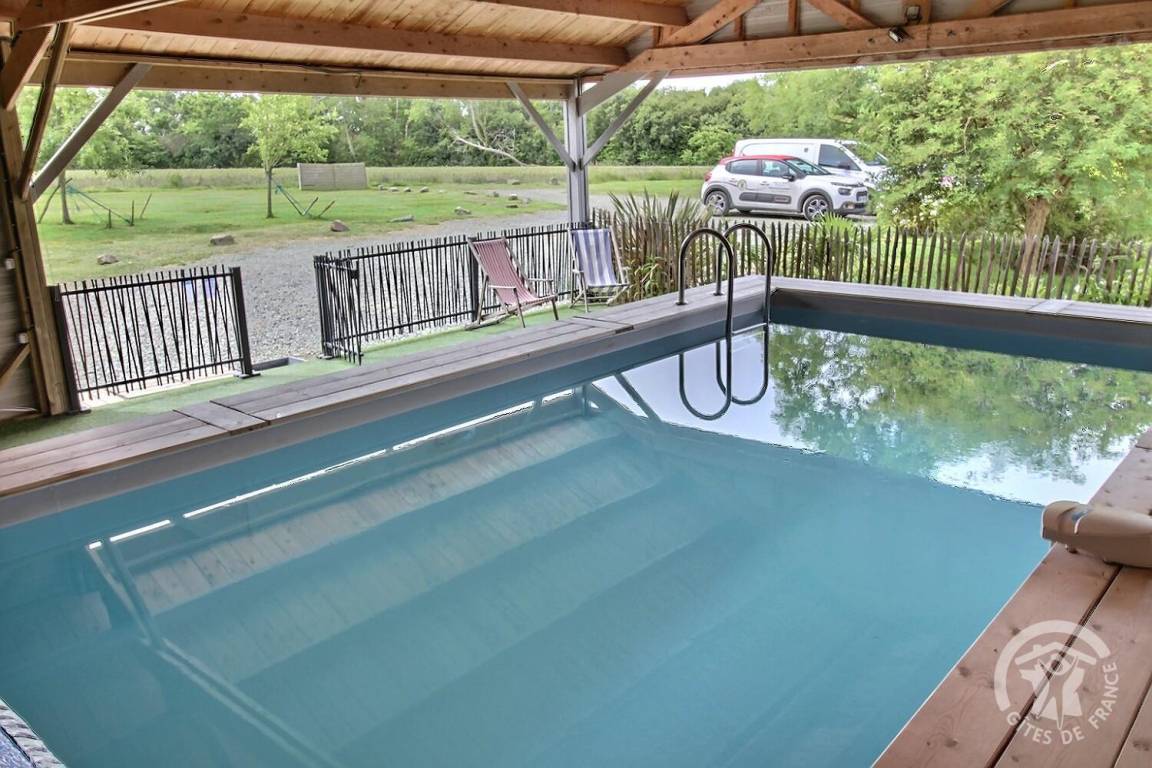 - Schwimmbad (6 x 3 m, Tiefe 1,50 m), überdacht und beheizt, steht Ihnen von April bis zu den Allerheiligenfeiertagen zur Verfügung. Zur gemeinsamen Nutzung mit zwei anderen Gîtes.