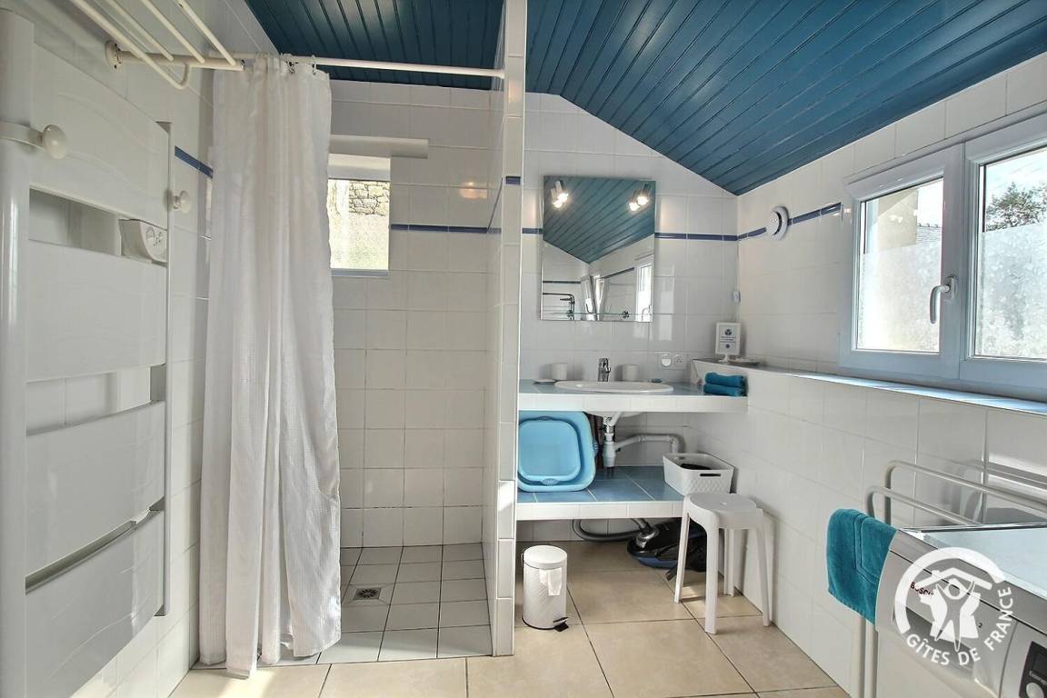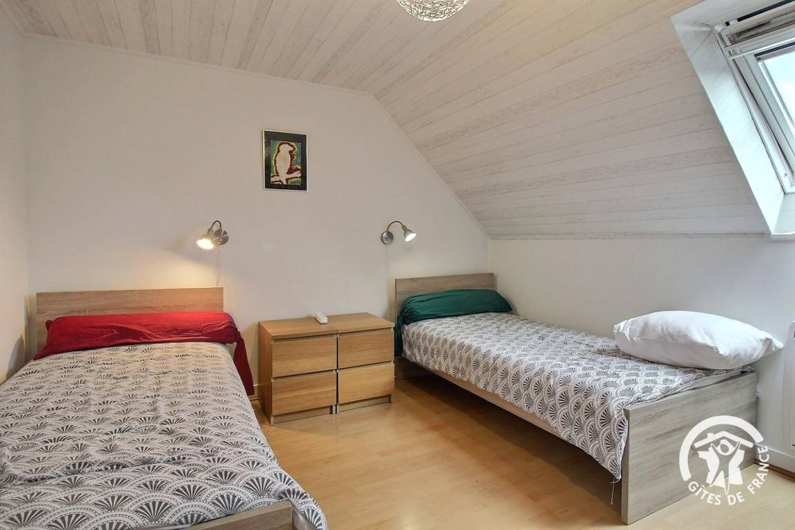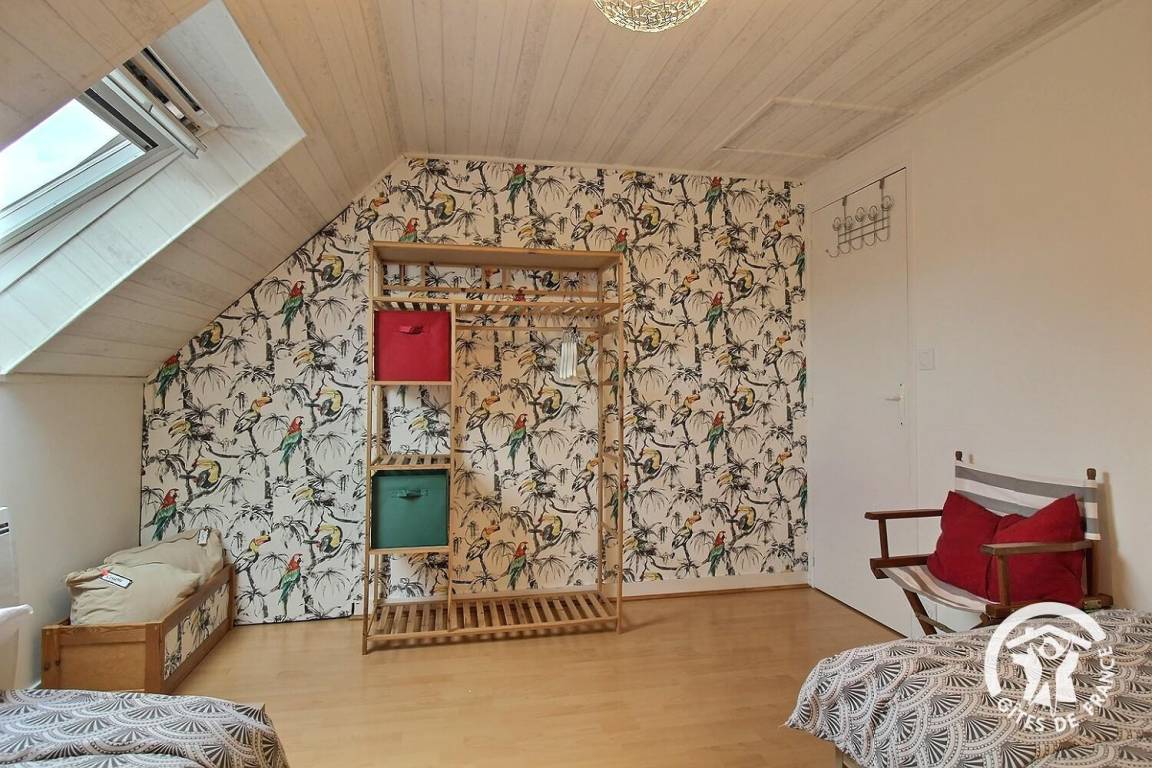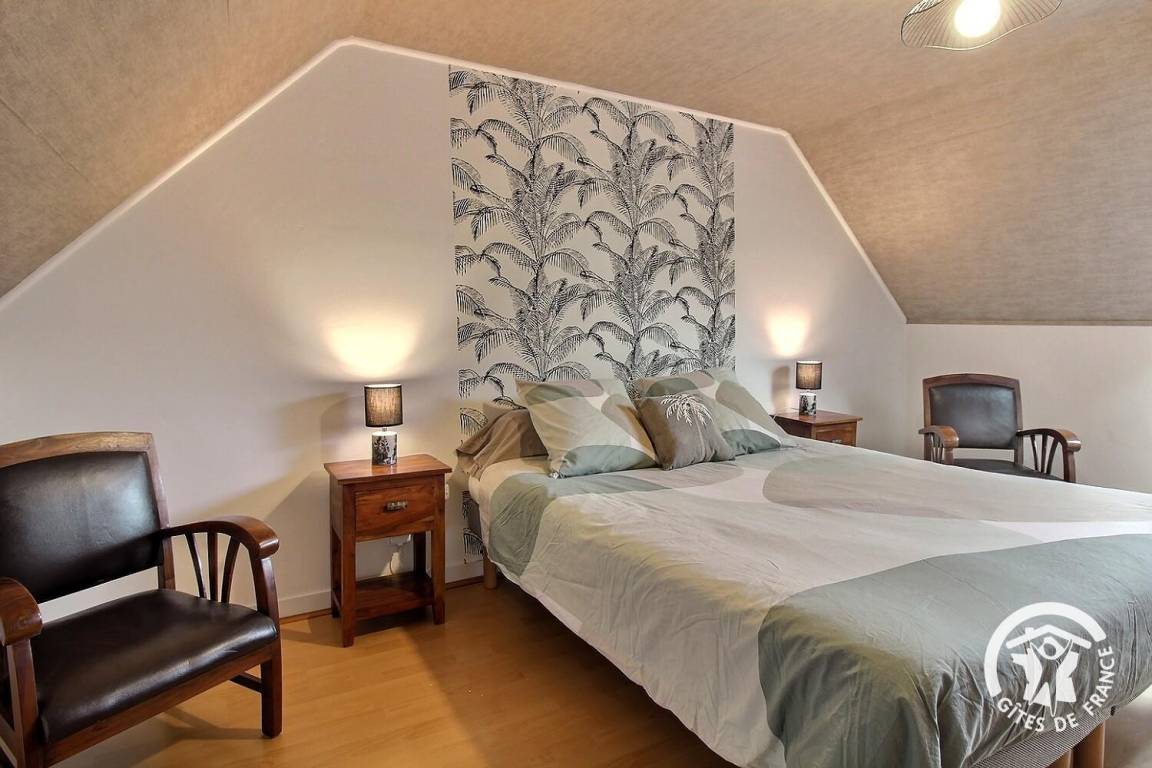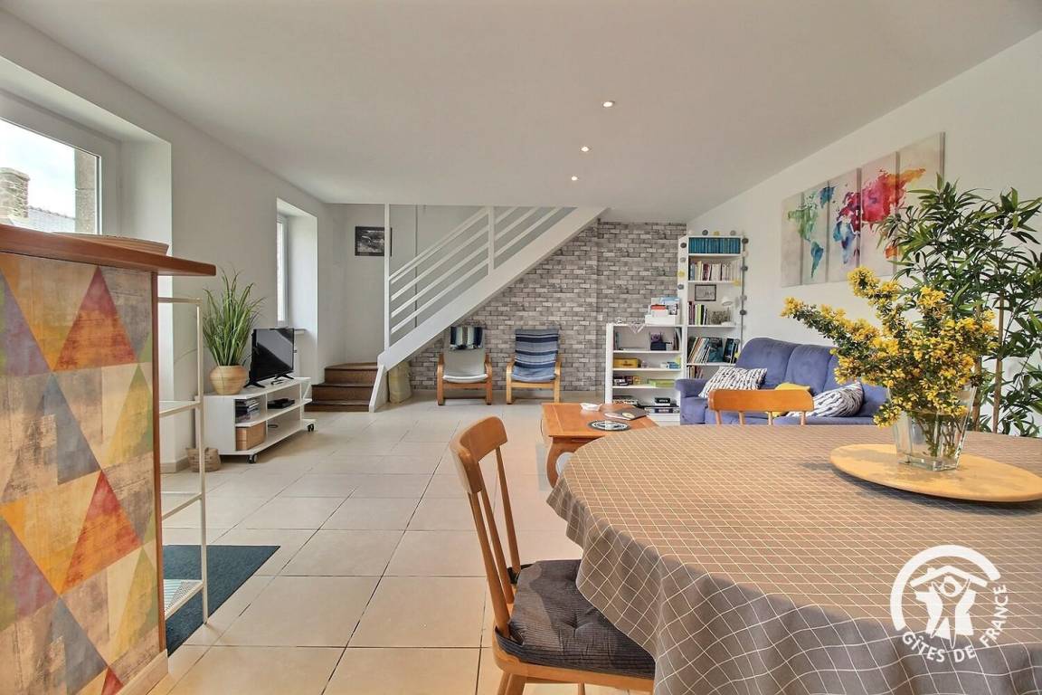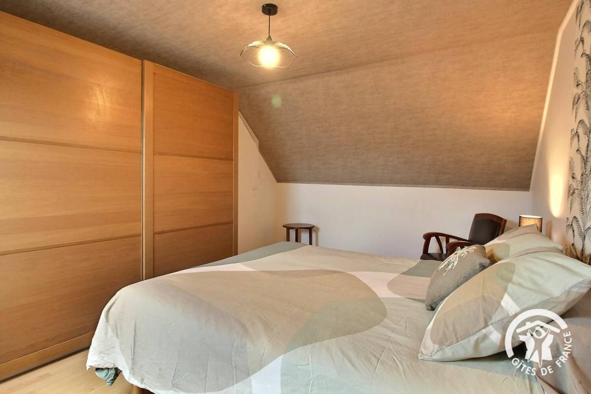 Ihre Ferienwohnung umfasst im Erdgeschoss: Wohnzimmer von 40 m² mit Einbauküche, Badezimmer (Dusche und WC), das Sie über 2 Stufen erreichen. Etage: 2 Schlafzimmer (1 Bett 160x200) und (2 Betten 90x190). Privater Innenhof, Parkplatz und Garten von 500 m².