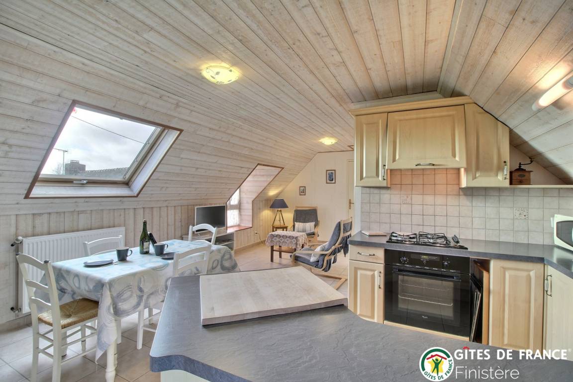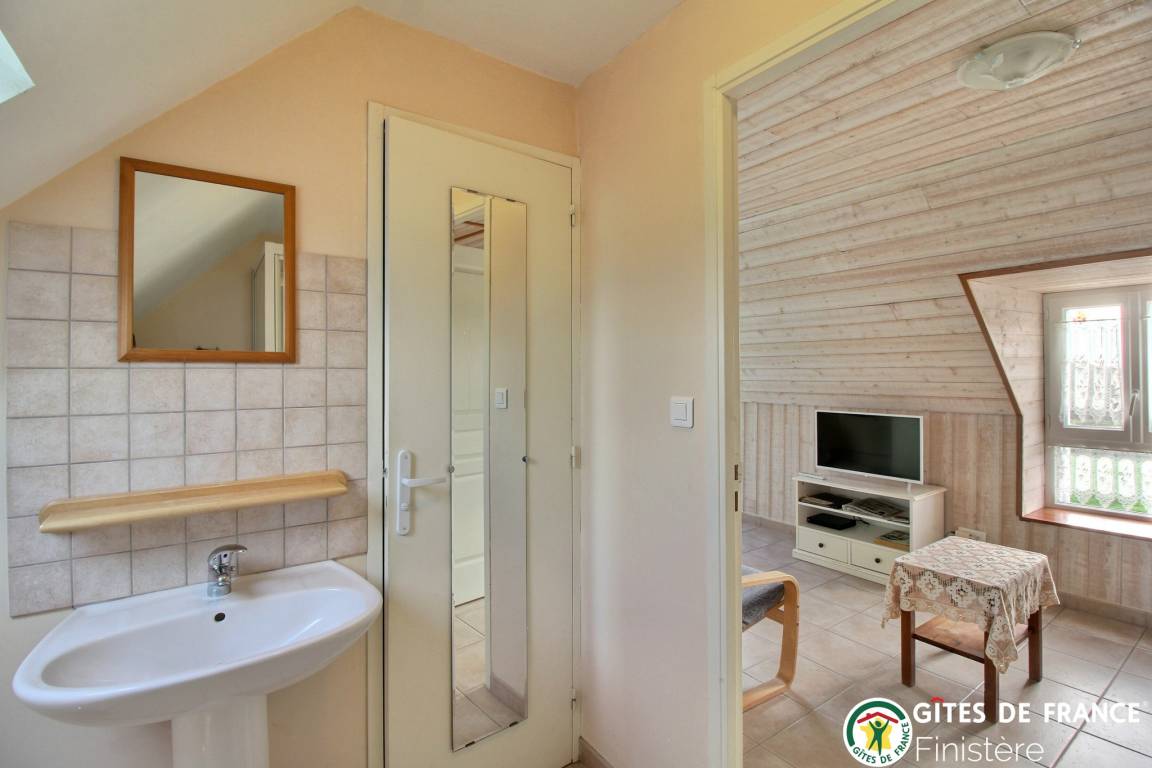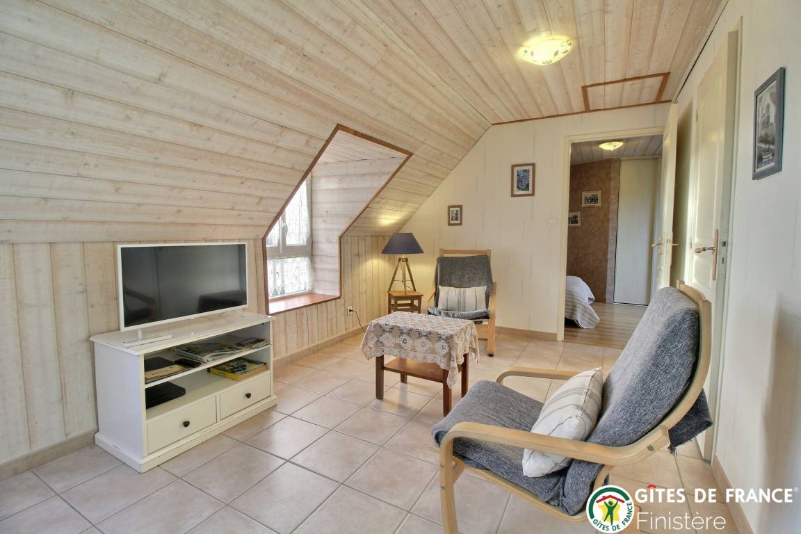 Haus auf dem Lande zwischen Quimper und Pont-l'Abbé mit Zugang über eine Treppe. Wohnraum mit Kochecke, Doppelzimmer, Dusche, sep. WC.Zustellbett auf Anfrage. Ölzentralheizung. Garten, Gartenmöbel, Grill.