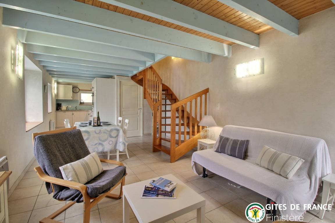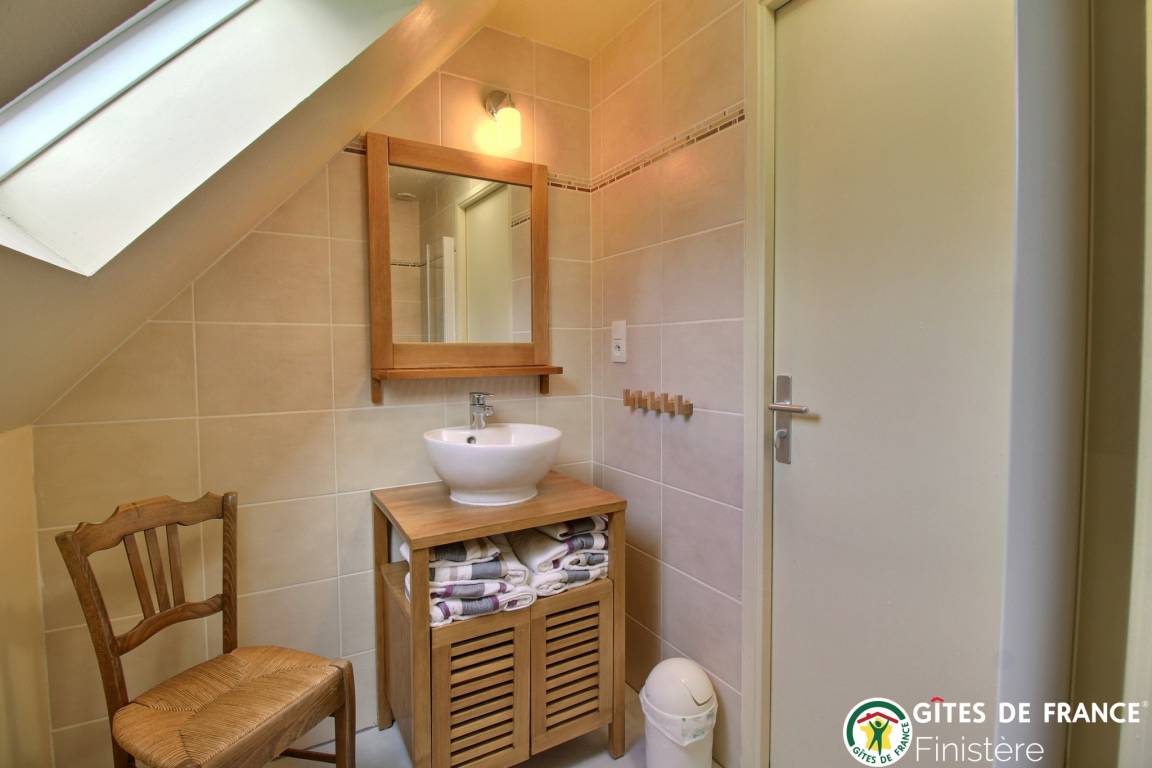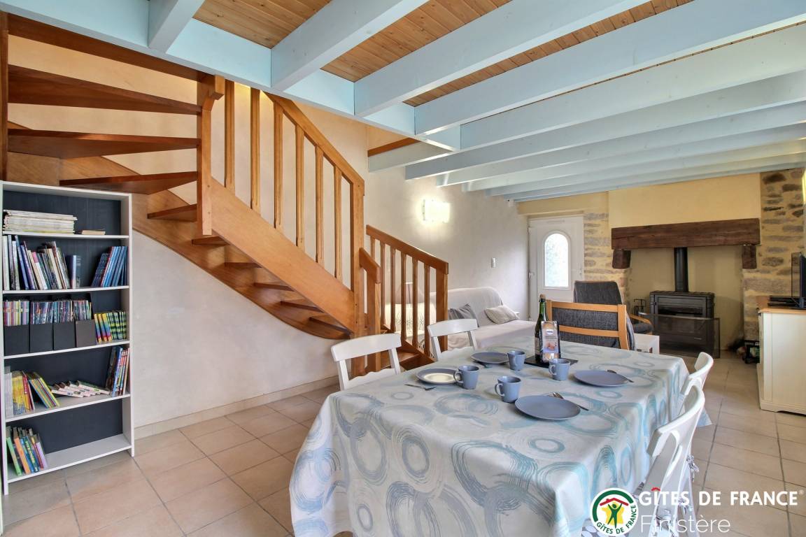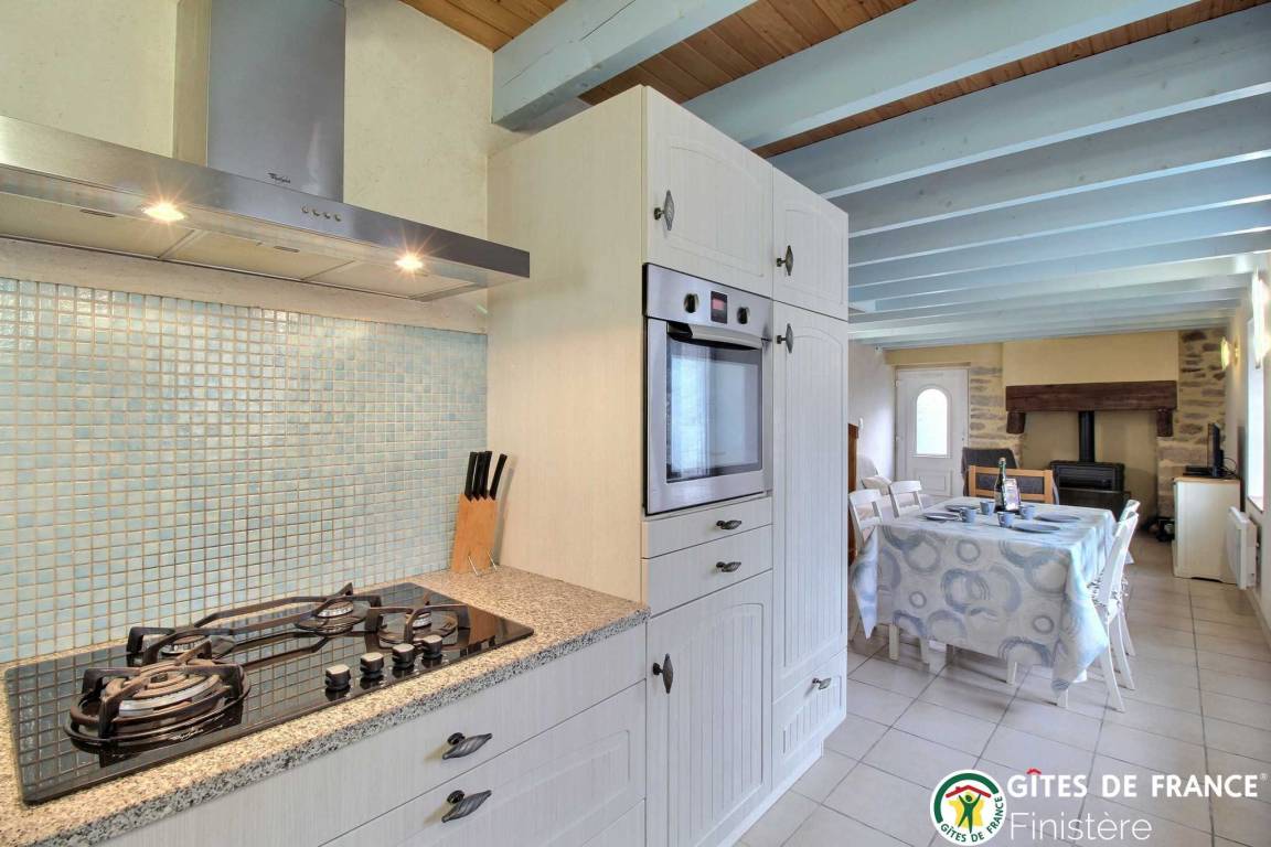 Freistehendes Haus im lokalen Stil zwischen Quimper und Pont-l'Abbé in der Nähe des Bio-Milchwirtschaft der Eigentümer und eines weiteren Gîtes. EG: Wohn-/Esszimmer mit Kochecke und Holzofen, sep. WC. 1.Stock: Doppelzimmer (Bettbreite 1.40m), Zweibettzimmer, Dusche. Wi-Fi. E-Heizung. Garten, Gartenmöbel, Grill.