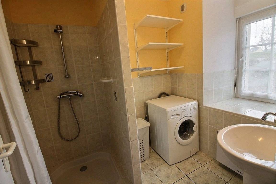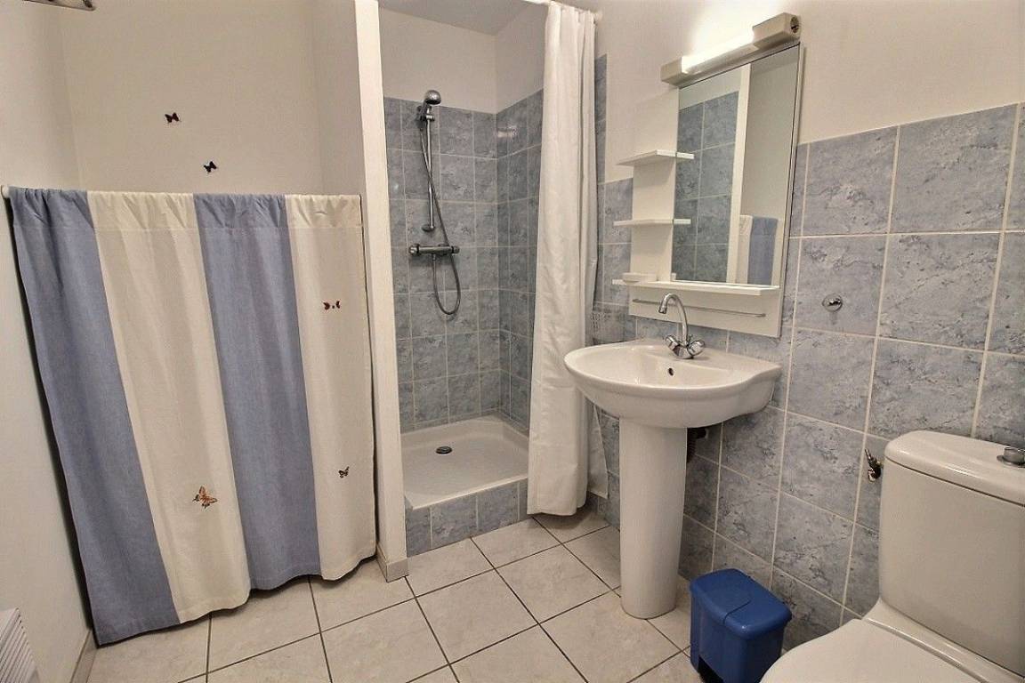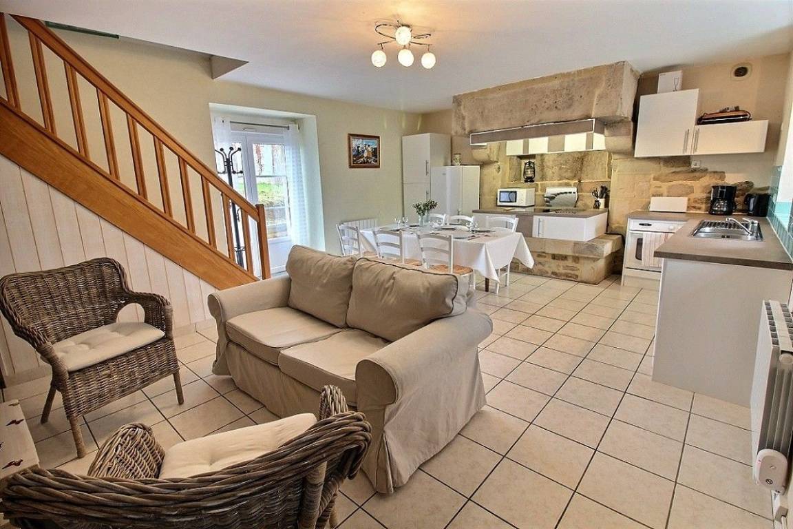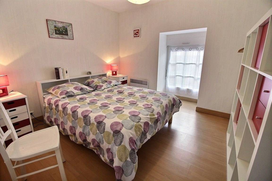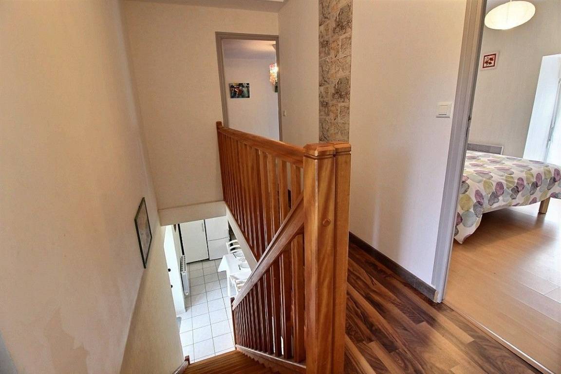 Dieses Ferienhausangebot enthält: Im Erdgeschoss: eine Einbauküche mit Essbereich, einen kleinen Wohnsalon, 1 Schlafzimmer (1 Bett 140x190), ein Bad mit Dusche, separates WC. Im Obergeschoss: 3 Schlafzimmer (2 x 1 Bett für 2 Personen 140x190) (2 Einzelbetten 90x190), ein Bad mit Dusche und WC. Babyausstattung vorhanden. Eigene Terrasse verfügbar. Innenhof von 150 m² auf der Frontseite, Grünfläche mit Boule-Spielbereich hinter dem Haus zur gemeinsamen Verfügung der 3 Ferienhäuser.