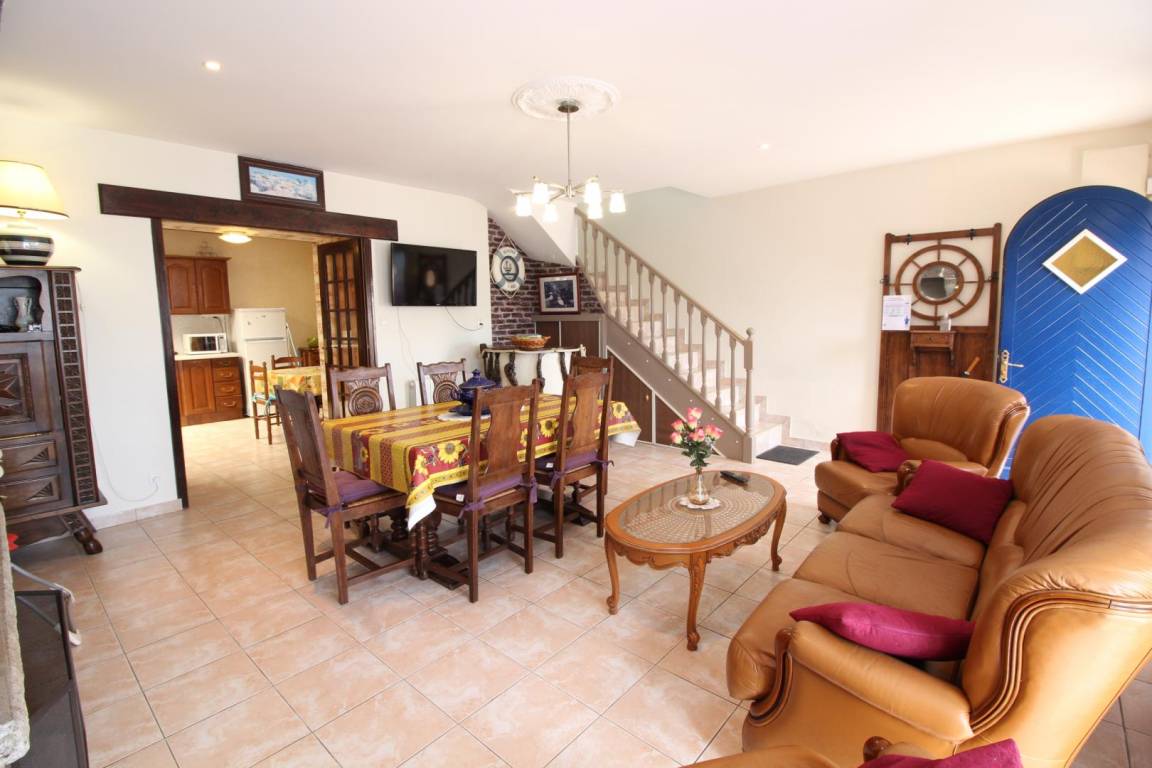 Dieses Ferienhausangebot enthält : Im Erdgeschoss: ein Ess-Wohnzimmer (Flachbildschirm), eine Einbauküche, ein kleines Badezimmer (schöne Duschkabine) und WC. Im 1. Stock : 3 Schlafzimmer. 1 Zimmer (1 Bett x 2 Personen), 1 Zimmer mit Flachbild-TV (2 elektrische Zwillingsbetten 80x200) und 1 Zimmer (1 Bett x 1 Person). WC. Betten sind bei Ihrer Anreise bezogen. Babyausstattung verfügbar. Schöne Steinterrasse von 28 m², privates Grundstück 90 m², mit Portal geschlossen. Eine zweite Gartenmöbelausrüstung.