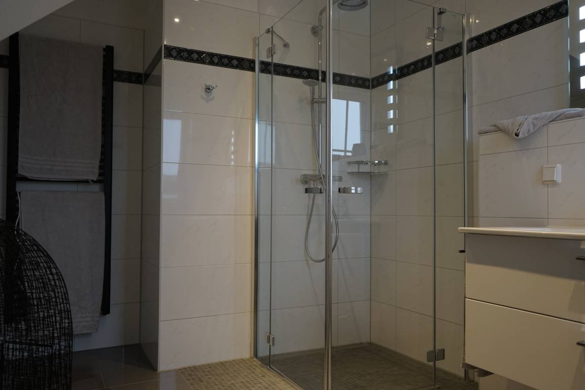 Die Haushälfte ist für die Nutzung durch 4 Erwachsene(+ 1Kind bis 2 Jahre) konzipiert. So ist gewährleistet, dass den Nutzern ein großzügiges Raumangebot unterbreitet werden kann.