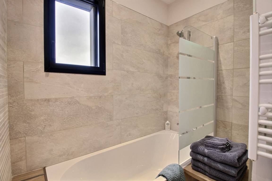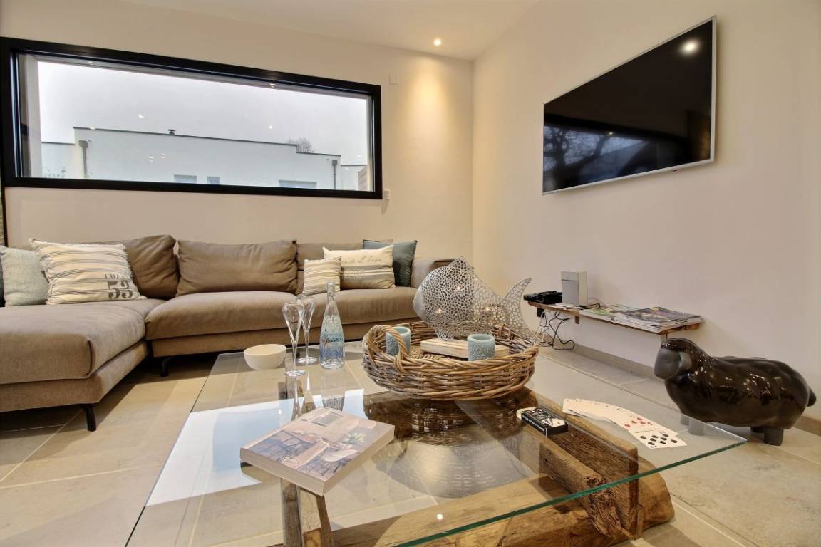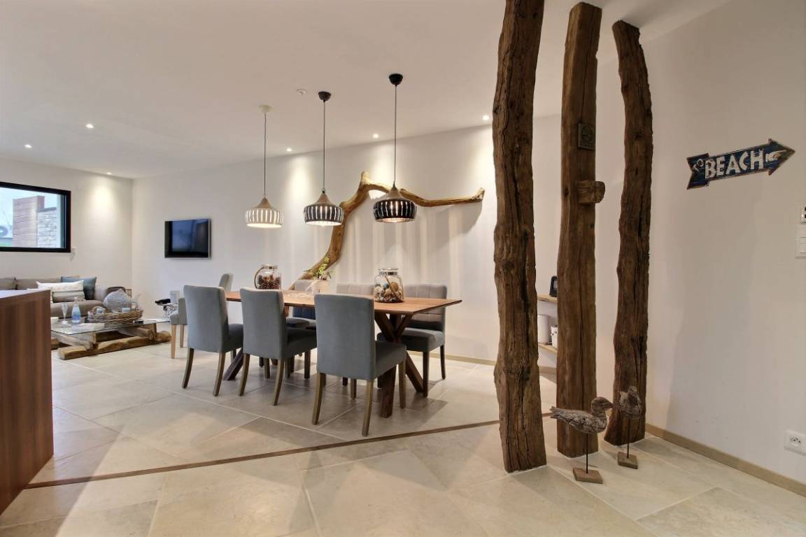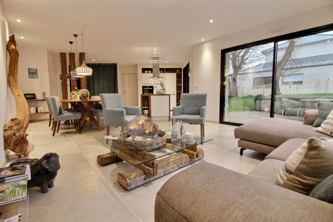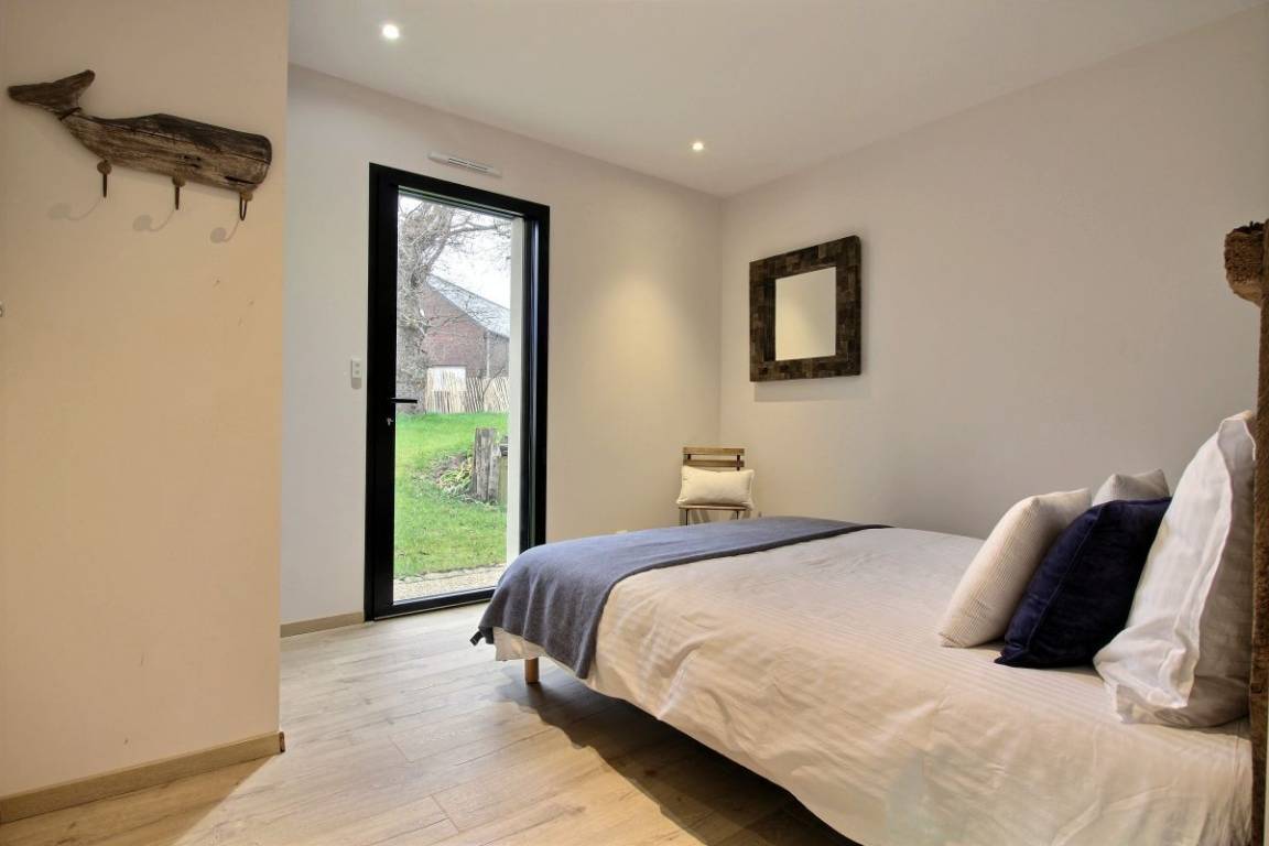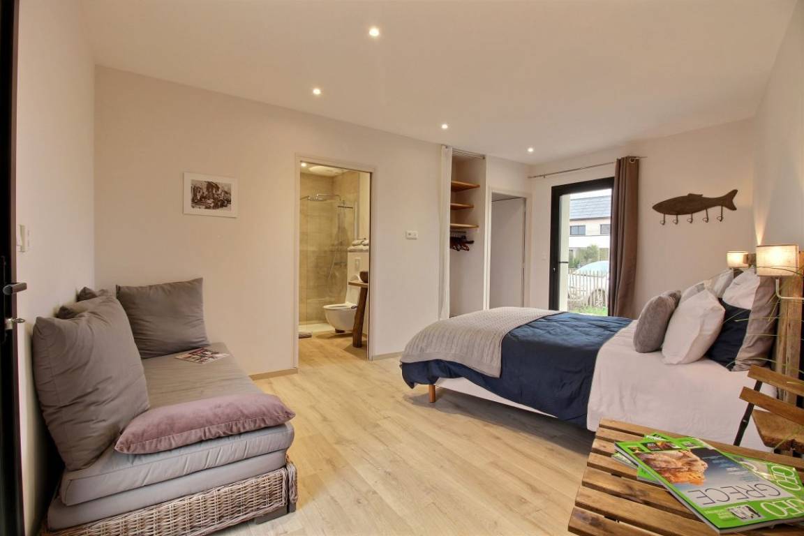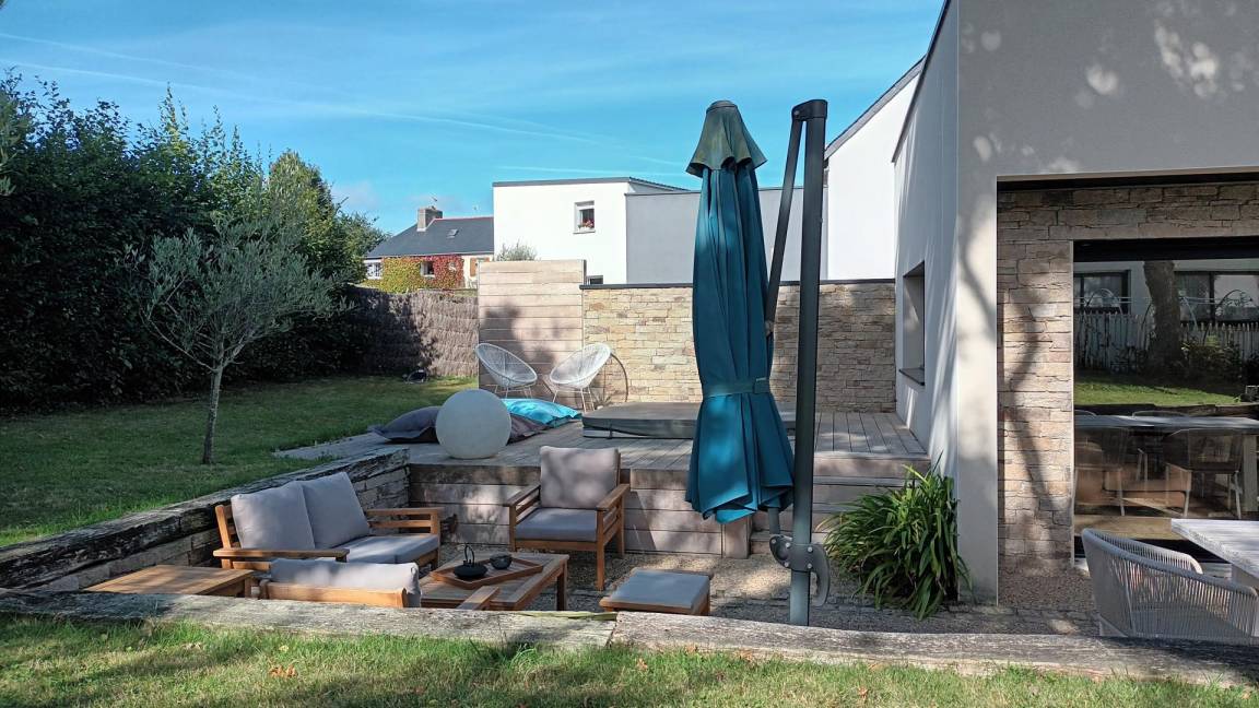 „Très belle maison dans un petit lotissement calme et proche de la mer (on peut y aller à pied et y accéder par un grand escalier).L organisation de l espace permet à chacun de vivre à son rythme. Le jacuzzi a été particulièrement apprécié des enfants qui ont ainsi oublié la fraîcheur de la météo Malgré le temps frisquet nous avons pu profiter des belles balades et apprécier les splendides paysages.“