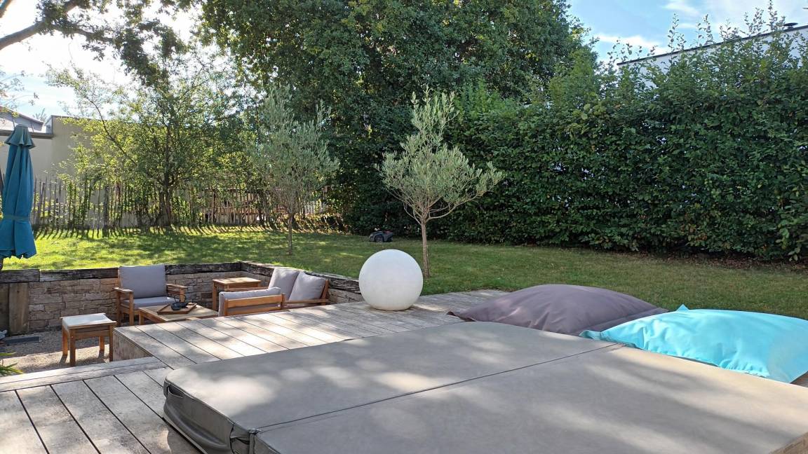 Ihre einstöckige Ferienwohnung umfasst: ein großes Wohnzimmer mit Küchenbereich (TNT und Satellitenfernsehen (internationale Kanäle und Netflix), zwei Schlafzimmer (1 Doppelbett 160 x 200) (2 Einzelbetten 80 x 200, die zwei Einzelbetten sein können), ein Badezimmer mit Badewanne , eine Toilette mit Waschbecken, eine Master-Suite (1 Doppelbett 160 x 200, TV) mit Badezimmer (Dusche und Toilette), Waschküche. Alle Zimmer haben direkten Zugang nach draußen. Draußen auf einer Holzterrasse: ein Outdoor-SPA für 6 Personen ganzjährig nutzbar (36°) Parahotelservices: Reinigungsvorschlag alle 3 Tage (50€), Bettwäschewechsel 20€/Bett), Rezeptionsservice Von Eichen gesäumtes Privatgrundstück von 450 m² und Terrasse von 60 m² m² mit Barbecue-Grill und Plancha-Grill 2 private Parkplätze.