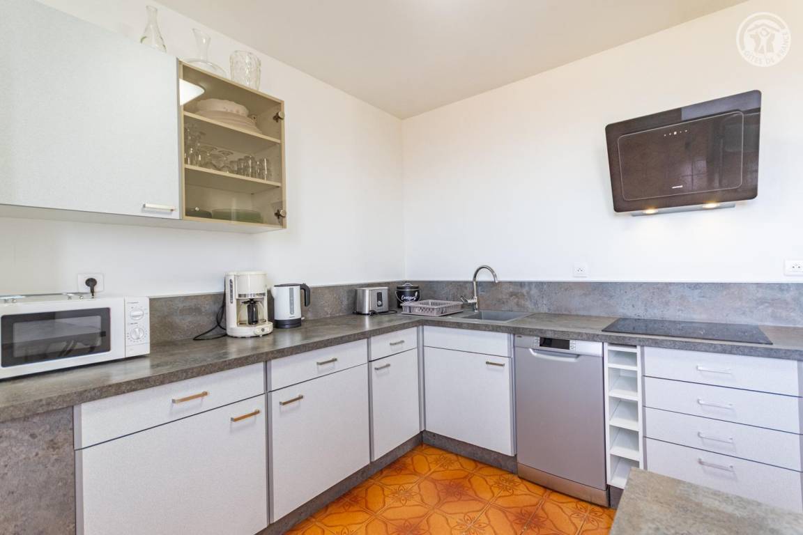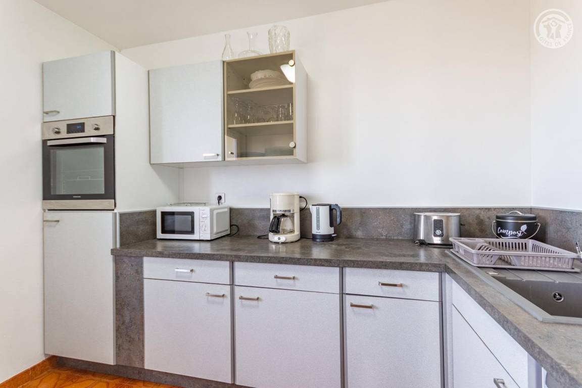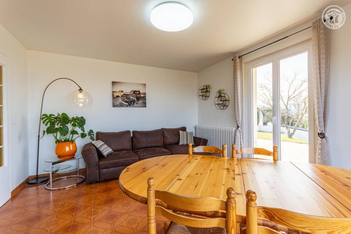 4 Ferienwohnungen im Haus des Eigentümers. Ebenerdige Unterkunft. Erdgeschoss: Küche, Wohnzimmer (1 Doppelschlafsofa 160x200 cm), 2 Schlafzimmer, davon 1 Kabine ohne Zugang nach außen (1 Doppelbett / 2 Einzelstockbetten 90x190 cm), Badezimmer (Badewanne). Im Erdgeschoss gemeinsame Waschküche im Heizungsraum (Waschmaschine und Trockner). Gemeinsame Terrasse + Innenhof + Grundstück. Gemeinsamer und beheizter Swimmingpool, geöffnet von Mitte Juni bis Ende August. Boule-Platz. Sommerküche mit Holzofen.