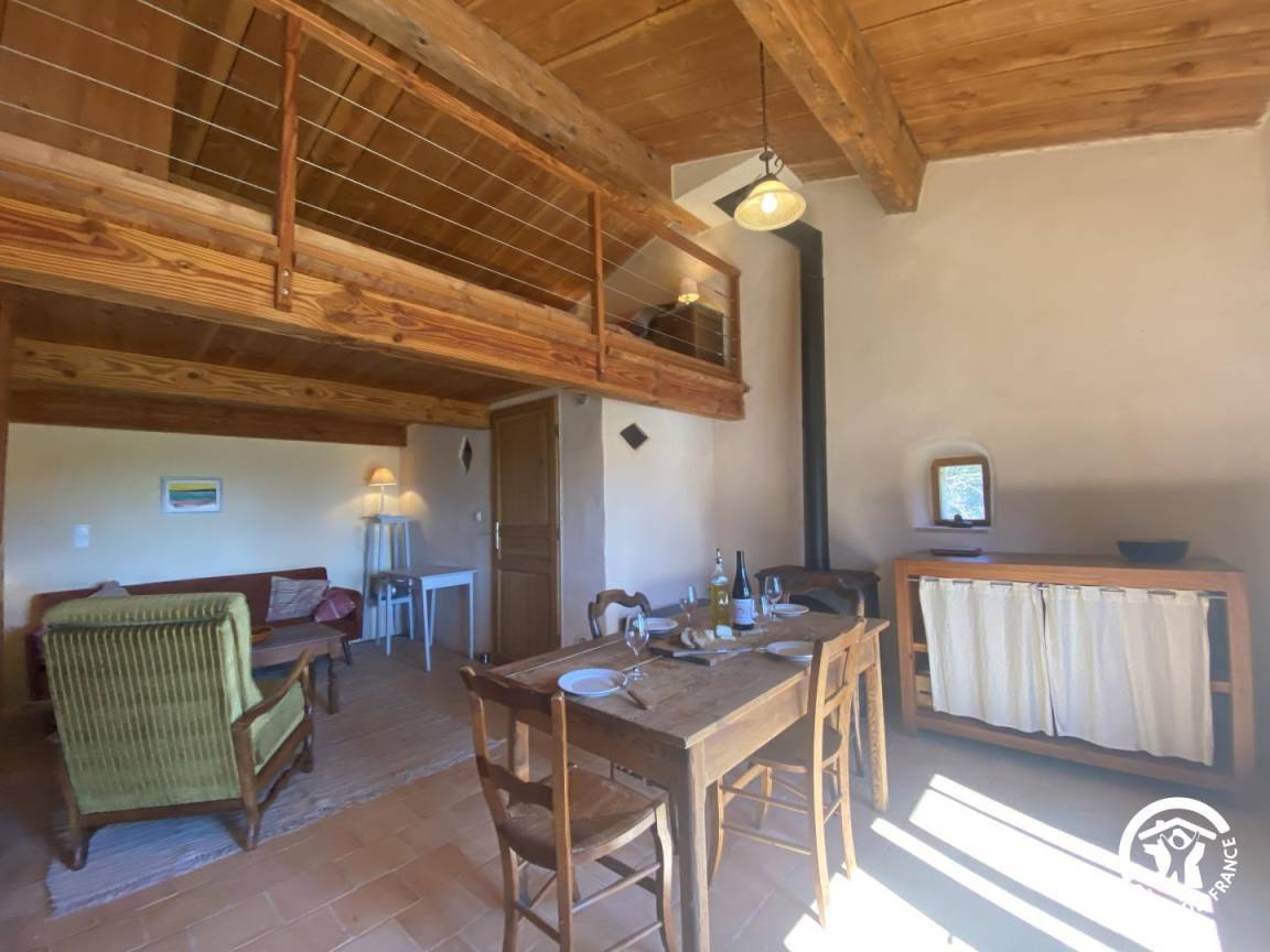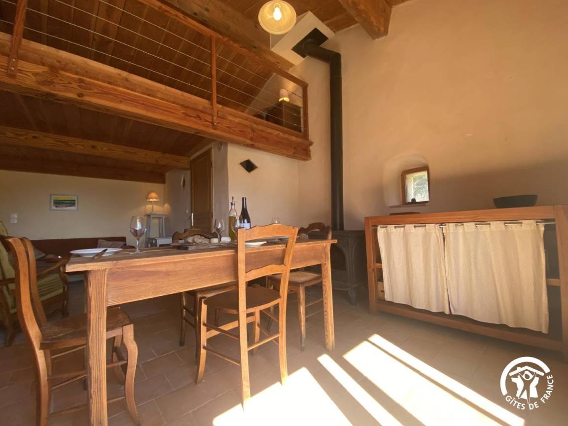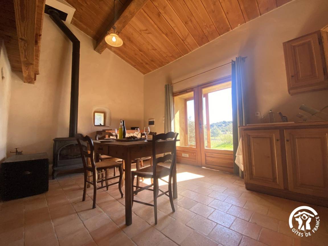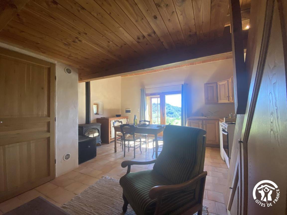 Obwohl das Ferienhaus keine herkömmliche Heizung hat, sorgt ein Kaminofen für angenehme Wärme und schafft eine behagliche und einladende Atmosphäre.