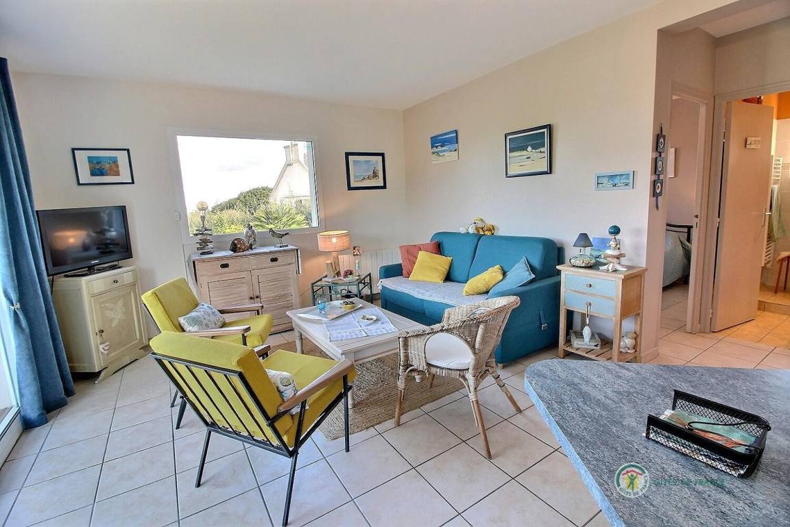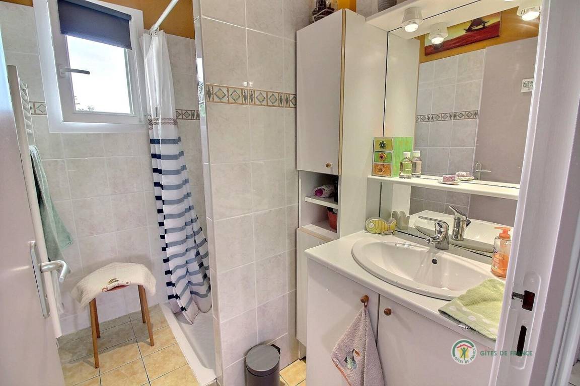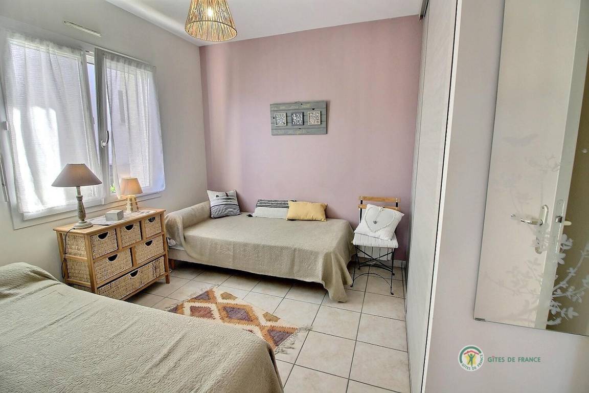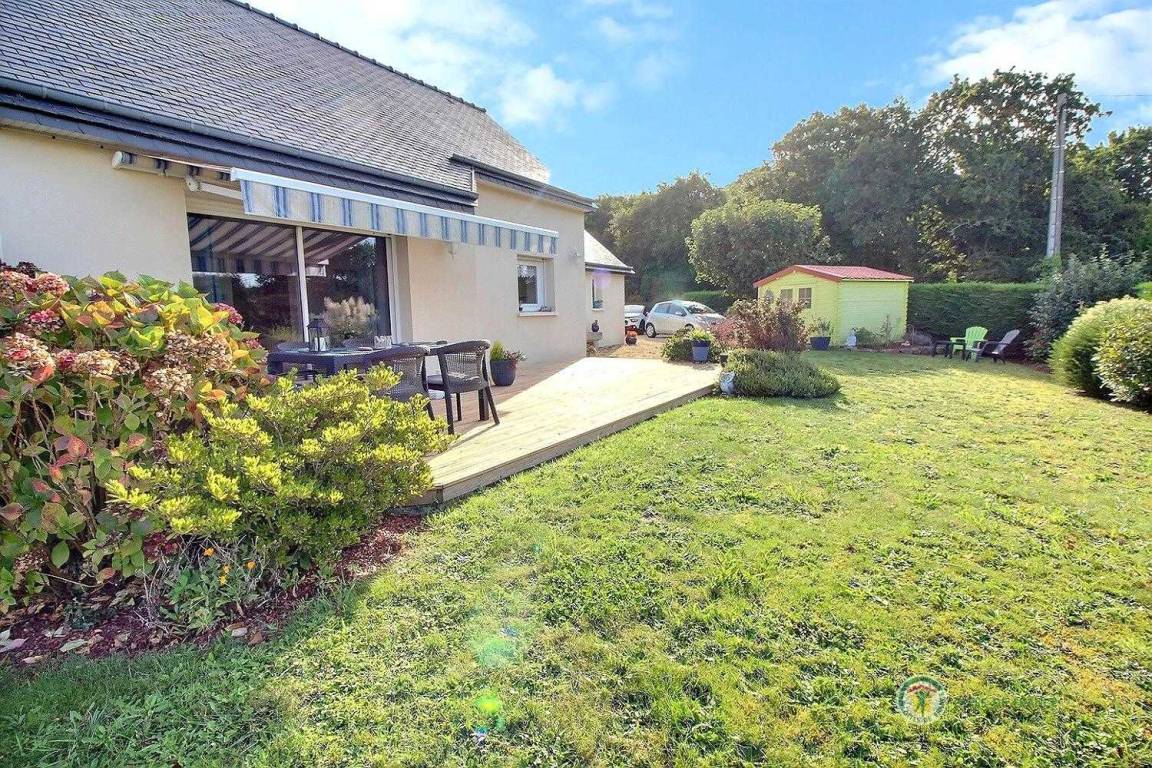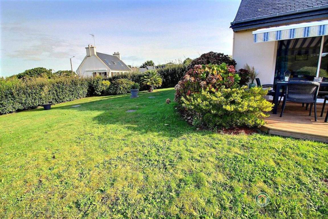 Dieses Ferienhaus umfasst : Im Erdgeschoss : eine voll ausgestattete Küche mit Öffnung zu einem Ess-Wohnsalon mit Blick auf das Meer in der Ferne. Zwei Zimmer (1 Bett 140x190) (2 Einzelbetten 90x190), ein Badezimmer, separates WC. Garten von 800 m². Terrasse von 40 m². Parkmöglichkeit auf dem Anwesen, Garage verfügbar.