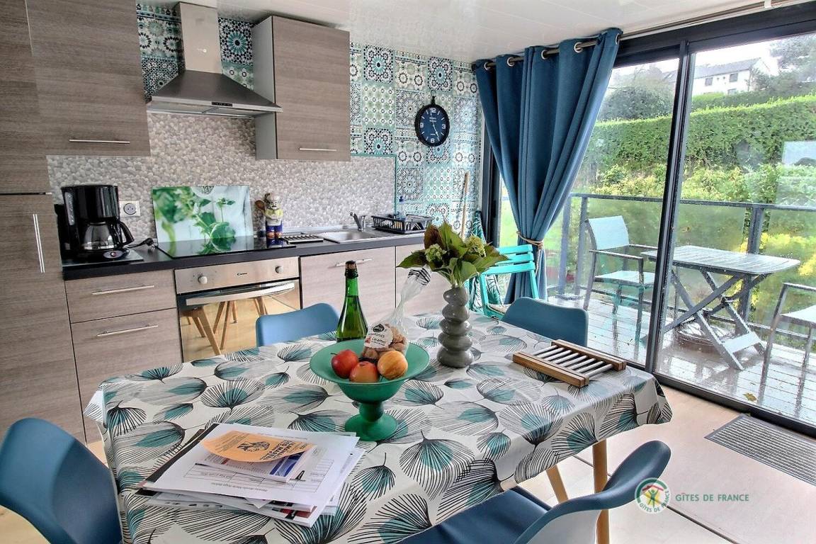 „Le lieu est magique, avec des fenêtres donnant sur la baie, l'espace est très bien agencé, confortable, bien équipé pour cuisiner. L'emplacement permet de découvrir la région en étoile et le village est à deux pas. Notre hôtesse nous avait même découpé la météo du journal et il y avait une bouteille de cidre dans le frigo..Nous les remercions pour leur accueil.“