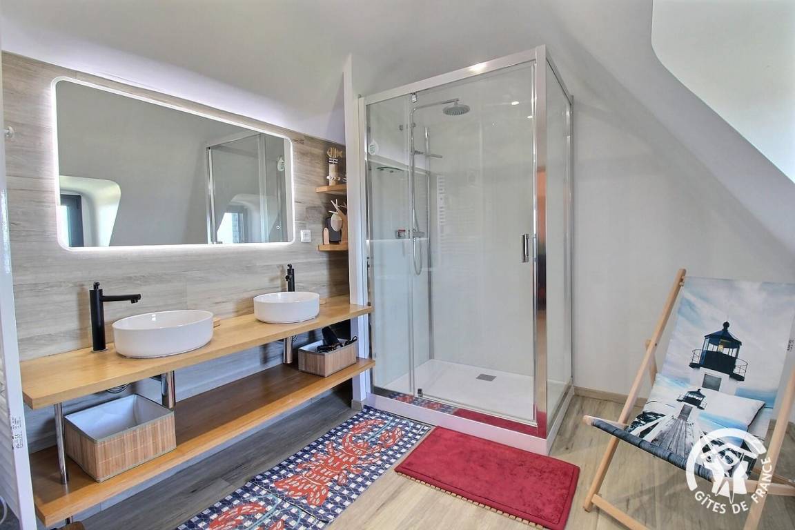 „Ar Men ist in jeder Hinsicht die beste Unterkunft die wir bisher in Frankreich nutzen durften. Lage, Zustand, Einrichtung und Ambiente der Häuser einfach perfekt. Die Häuser sind geschmackvoll und gekonnt hergerichtet die Einrichtung funktional teilweise gehoben und sehr gut aufeinander abgestimmt.Lichtführung, Material- und Farbauswahl gekonnt und durchdacht, hier waren Profis am Werk. Die Räume sind liebevoll und geschmackvoll dekoriert, man fühlt sich wohl und fast schon zu Hause. Man kann sich auch mit 6 erwachsenen Personen gut aus dem Weg gehen oder eben entspannt zusammensitzen. Aus jedem Fenster ist das Meer zu sehen und zum Sand-Strand braucht man 2 Minuten zu Fuß eine kleine Kiesbucht liegt genau gegenüber. Der Fußweg der am Haus entlang führt ist zwar gut besucht, aber stört in keiner Weise. Eine kleine logistische Herausforderung ergibt sich eventuell aus der Lage des oberen Badezimmers das nur durch das große Schlafzimmer erreichbar ist. Der Gastgeber ist sehr unkompliziert, sympathisch und hilfsbereit, zweisprachig und jederzeit erreichbar. Wir haben alle unseren Aufenthalt sehr genossen und kommen bestimmt wieder.“