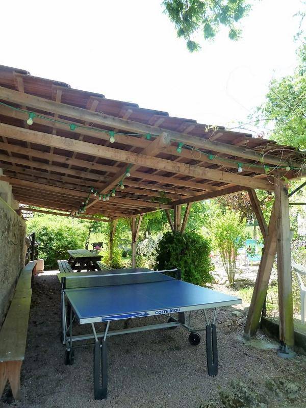 Draußen, auf einem eingezäunten und mit Bäumen bepflanzten Grundstück von 2000 m², gibt es viele Orte für Mahlzeiten (mit Grill), Aperitif, Ruhe und Spiele: große Schaukel, Bocciabahn, Tischtennis und ein sehr schönes Spiel Wasser für die heißen Tage.