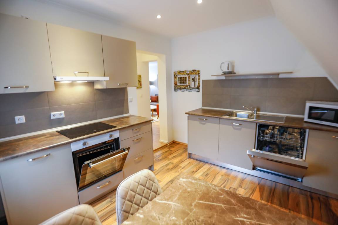 Die Wohnungen wurden im Jahr 2021 komplett renoviert und neu eingerichtet. Der Eingangsbereich empfängt Sie mit einer Garderobe und einer Schuhbank. Stärken Sie sich nach Ihren Tagesausflügen in der neu, voll ausgestatteten Einbauküche (inklusive Kühlschrank und Gefrierfach, Backofen, Ceranfeld, Spülmaschine, Mikrowelle, Wasserkocher, Kaffeemaschine (Tassimo), Besteck und Geschirr, Kochutensilien) und erfrischen Sie sich in den neu gestalteten Badezimmern. Hier stehen Ihnen jeweils Dusche mit Kabine & WC zur Verfügung.