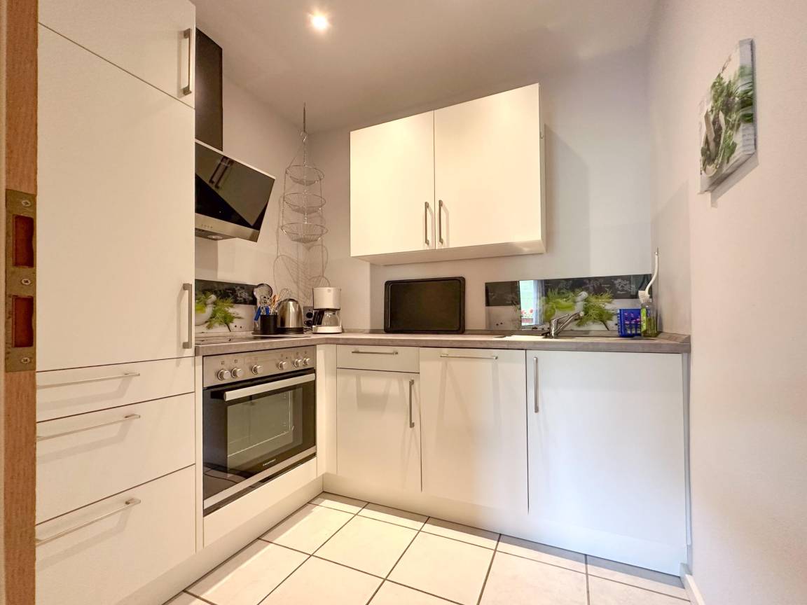 Layout : In der 1. Etage: Küche mit Wasserkocher, Kochherd, Dunstabzugshaube, Kaffeemaschine(Filter), Backofen, Geschirrspüler, Kühlschrank , Wohn/Esszimmer mit Schlafcouch 1 Pers., TV, Esstisch, Sitzecke, Radio , 2x Schlafzimmer mit Badezimmer mit Doppelbett, Dusche, Waschbecken , Flur, Balkon