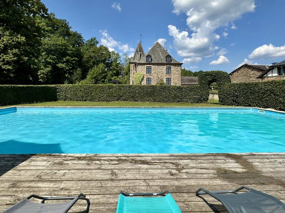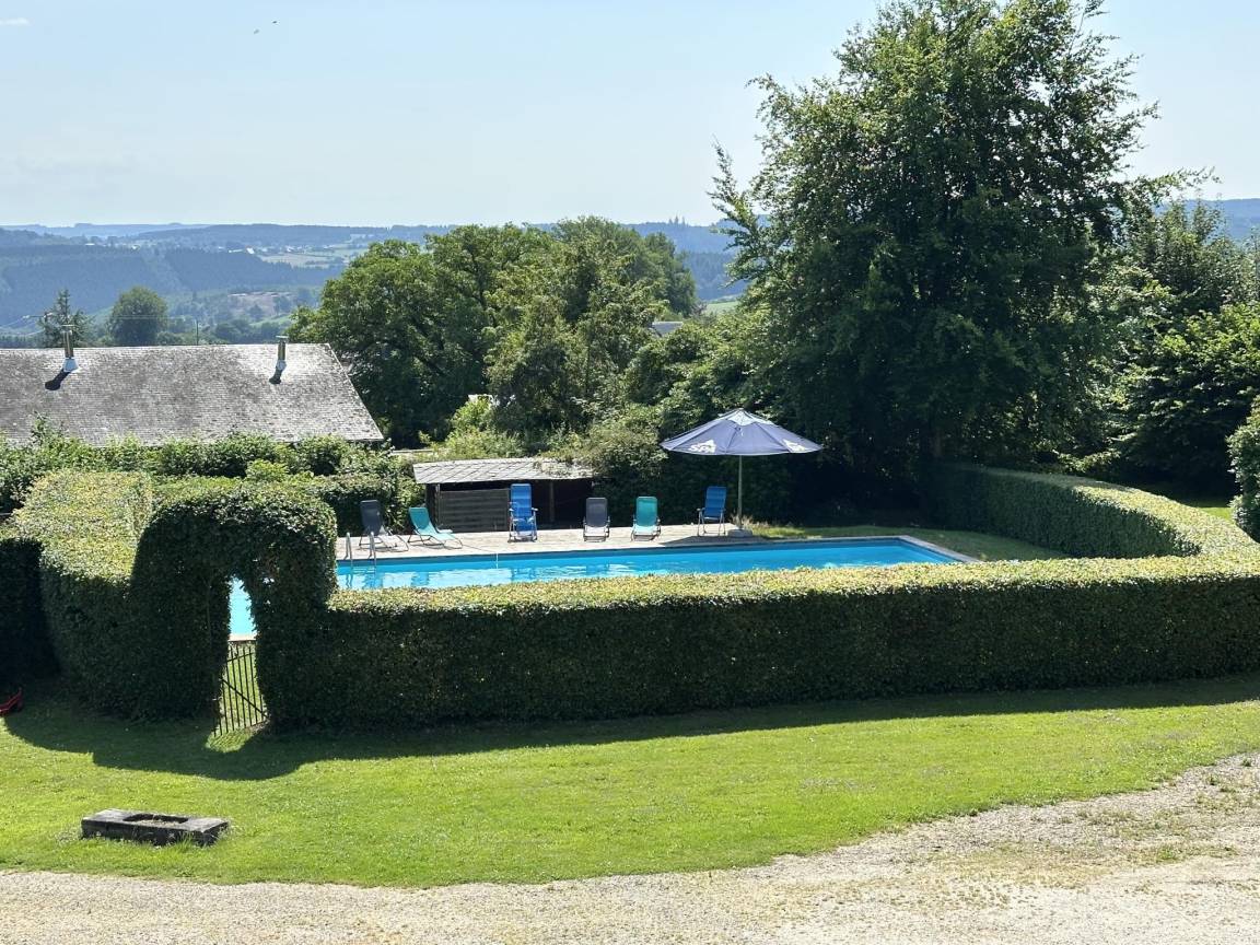 Terrasse(alleinige Nutzung, 50 m²), Garten(alleinige Nutzung, teilweise umzäunt, 6000 m²), 10x Parkplatz(auf dem Gelände), Pool(alleinige Nutzung, im Garten, erwärmt, 18 x 10 m., Tiefe: 1.5m, geöffnet von Jul bis einschließlich Aug), Tennisplatz(alleinige Nutzung), 1x Kinderbett (ohne Bettwäsche)