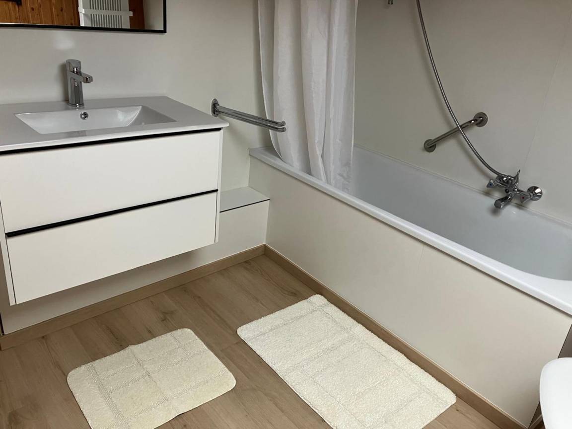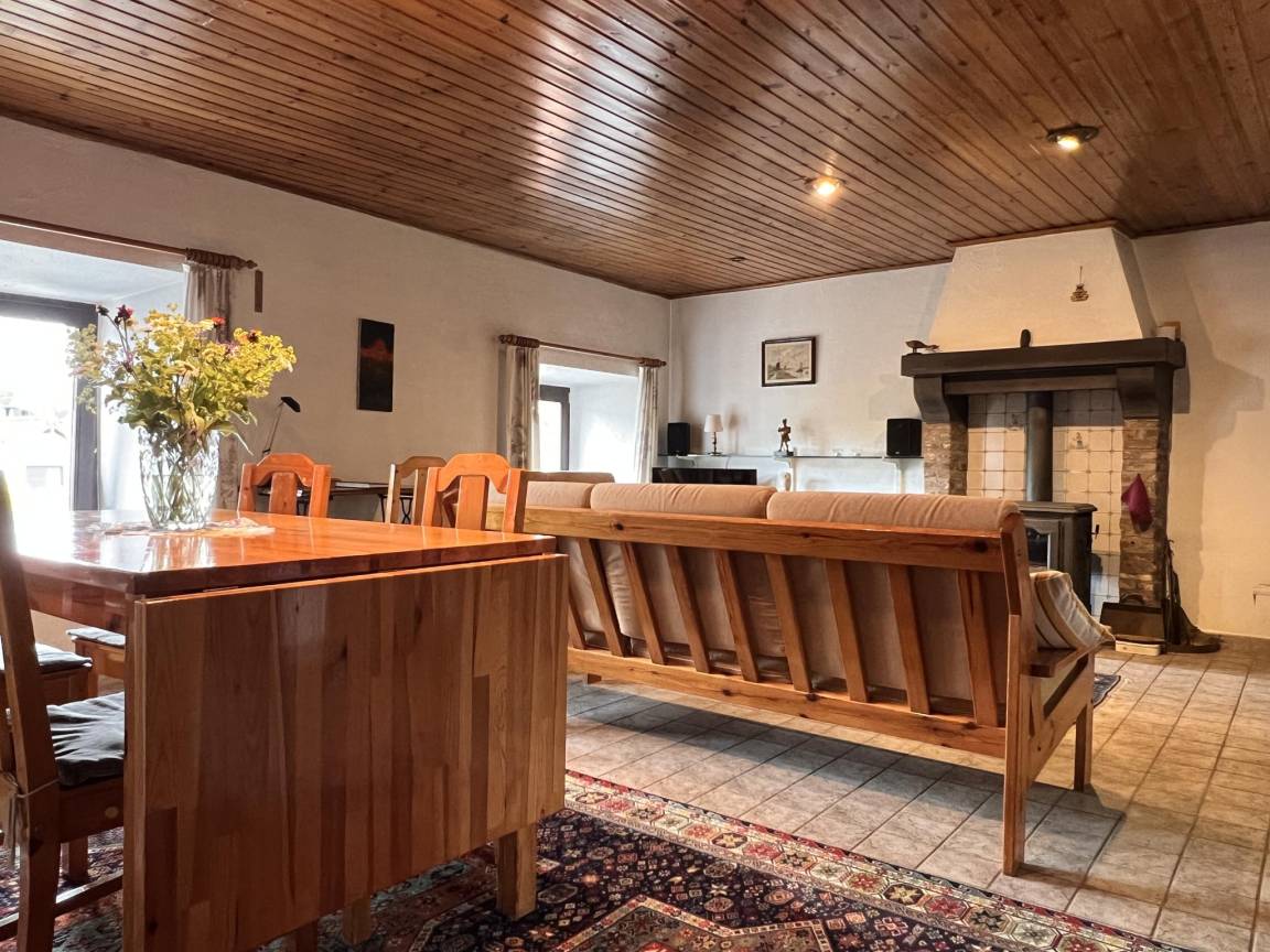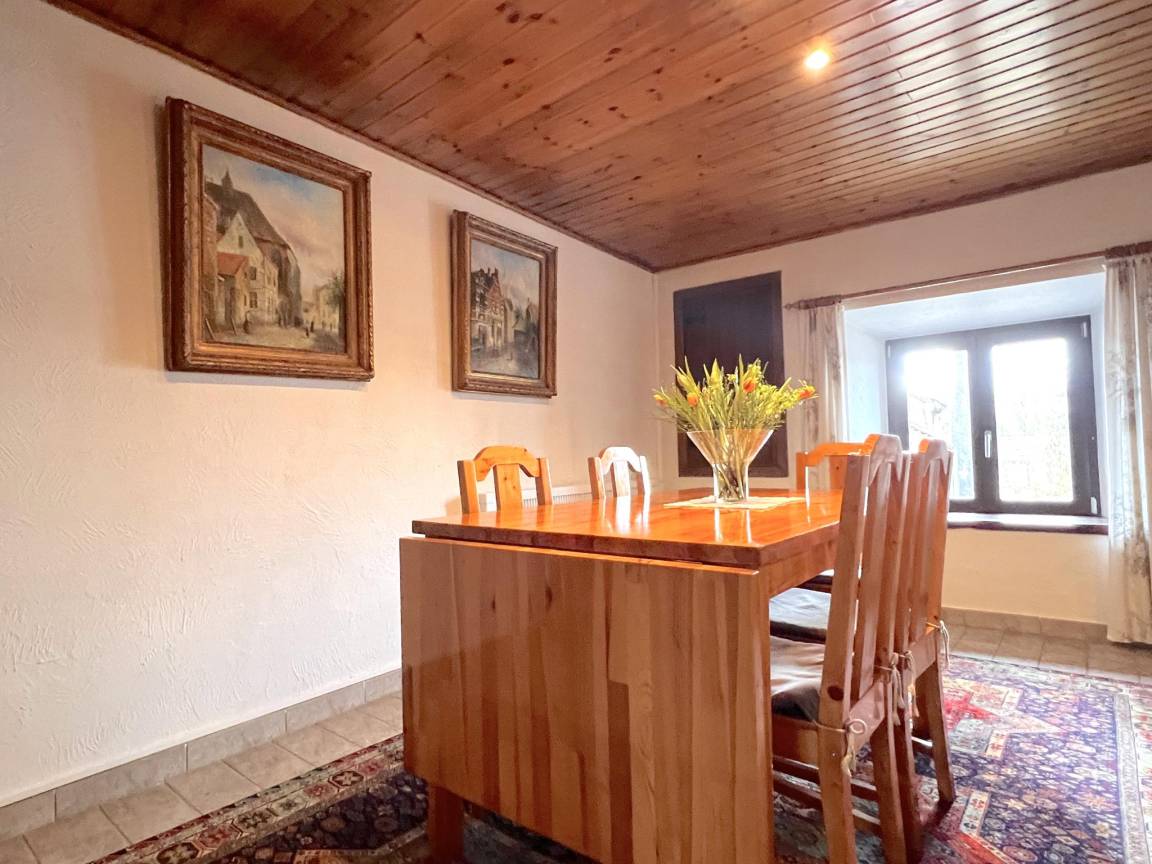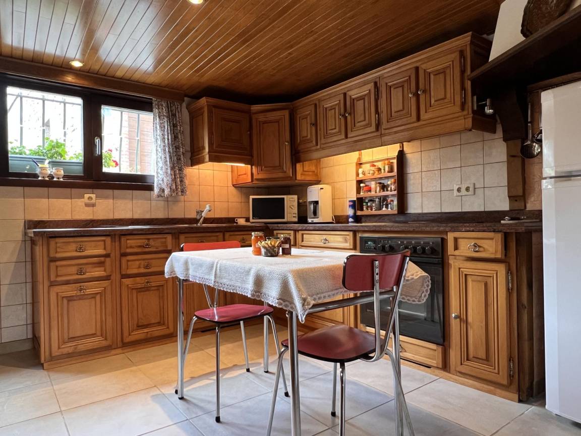 Layout : Parterre: Eingang, Wohnzimmer mit TV, Esstisch(6 Personen), Ofen(Holz), Sitzecke, Radio, Gesellschaftsspiele, Spielzeug , Küche mit Wasserkocher, Toaster, Kochherd, Dunstabzugshaube, Kaffeemaschine(Filter), Backofen, Mikrowelle, Geschirrspüler, Kühl-/Gefrierkombination, Mixer, Stabmixer , Toilette