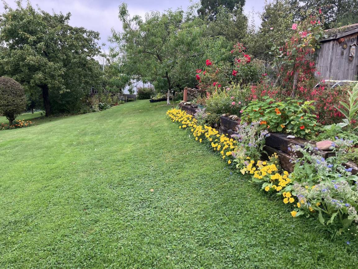 „Es macht riesigen Spaß, hier seinen Urlaub zu verbringen. Unglaublich herzlicher Empfang durch Gastgeberin Ann. Klare Erklärung der Ins und Outs von Ihrem Aufenthalt in ihrem gemütlichen Ferienhaus. Immer bereit für ein Gespräch und Tipps zu möglichen Unternehmungen. Herrliche Wandermöglichkeiten in der unmittelbaren Umgebung. Bei der Begrüßung erhielten wir zwei Gläser mit selbstgemachten Konfigurationen und eine Flasche selbstgemachten Apfelsaft aus Äpfeln aus unserem eigenen Garten. Wir haben während unseres Aufenthalts sogar Zucchini aus dem eigenen Garten bekommen, kurzum, ein sehr gemütliches und schönes Ferienhaus. Und alles ist da, was man in der Küche braucht.“