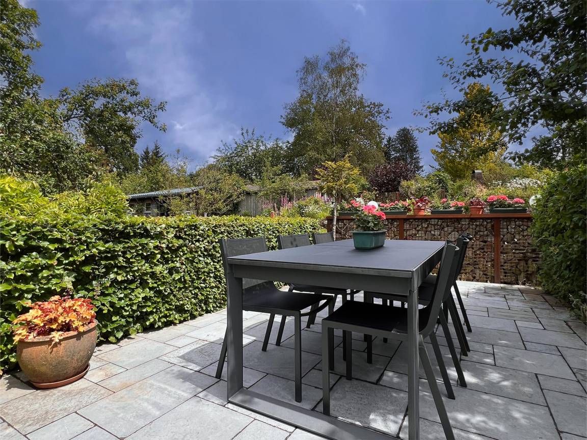 1x Garage(1 Parkplatz), Wäschetrockner, Waschmaschine, Terrasse, Garten(teilweise umzäunt), Gartenmöbel, BBQ(Holzkohle), 3x Parkplatz, Tischfußball, 3x Hochstuhl