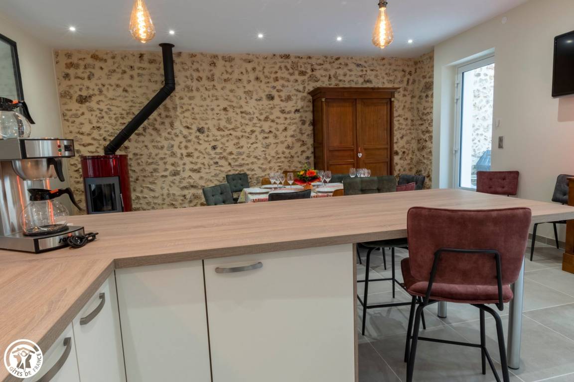 „Nous avions loué les 2 gîtes pour un week-end de Pâques en famille de rêve !Le grand gîte est très agréable, avec sa grande pièce à vivre mais aussi ses espaces de retrait au calme. Les chambres sont hyper confortables (lits de 180cm !) et les salles de bain sont nombreuses. Le petit gîte est calme et cozy, une combinaison idéale avec le grand. L’espace extérieur est sécurisé pour les jeunes enfants grâce au portail, convivial avec la grande table de repas et le spa. Cerise sur le gâteau: Le champagne de la maison Joly est délicieux et la large gamme ravira les papilles à coup sûr !Nous reviendrons.“