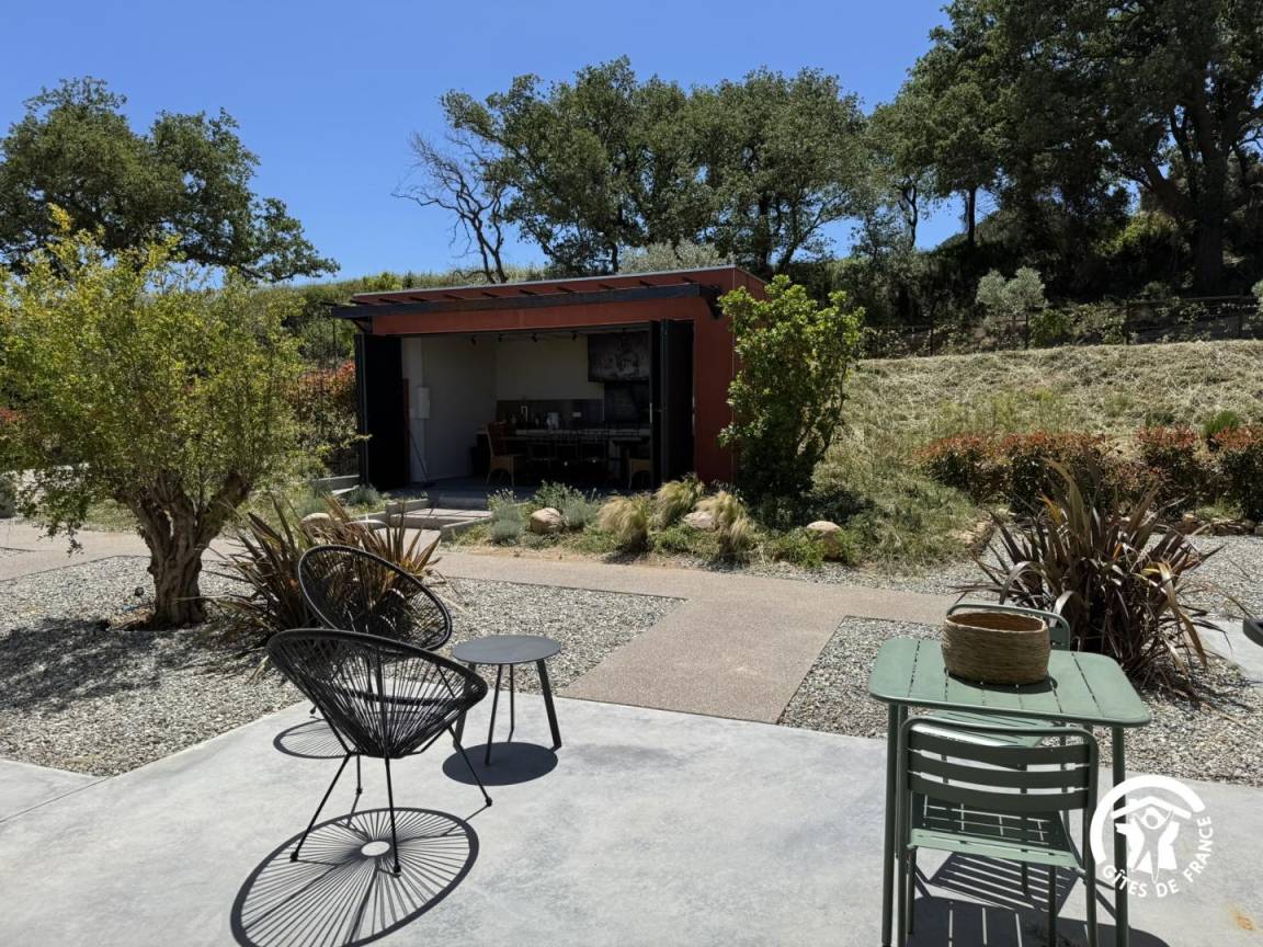 „Ce gîte, ouvert depuis quelques semaines est incroyable. Nous avons été accueillis chaleureusement par les propriétaires. Le gîte situé en plein vignoble est au calme. Il est proche des montagnes et des plages... randonnées, canyoning, baignades, il y en a pour tous les goûts !La décoration est simple, moderne et così. De plus la piscine équipée d'un jacuzzi apporte détente et bien-être. Nous avons bien profité de la cuisine extérieure équipée d'une plancha et BBQ. Nous avons pu profiter également de la dégustation de différents vins excellents, produits par les propriétaires de ce magnifique domaine. Bref, excellentes vacances !Nous le recommandons vivement et certainement y retournons.“