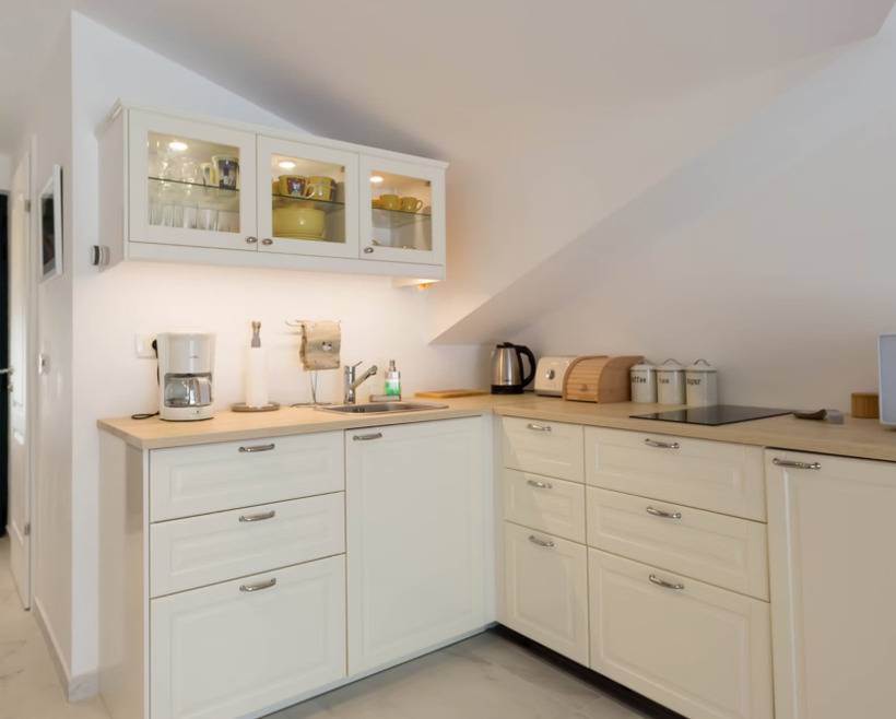Küchenutensilien wie Kaffeemaschine, Mixer, Toaster, Stabmixer, Handmixer, Panini-Presse und mehr.