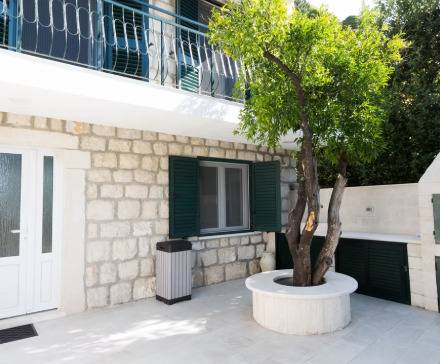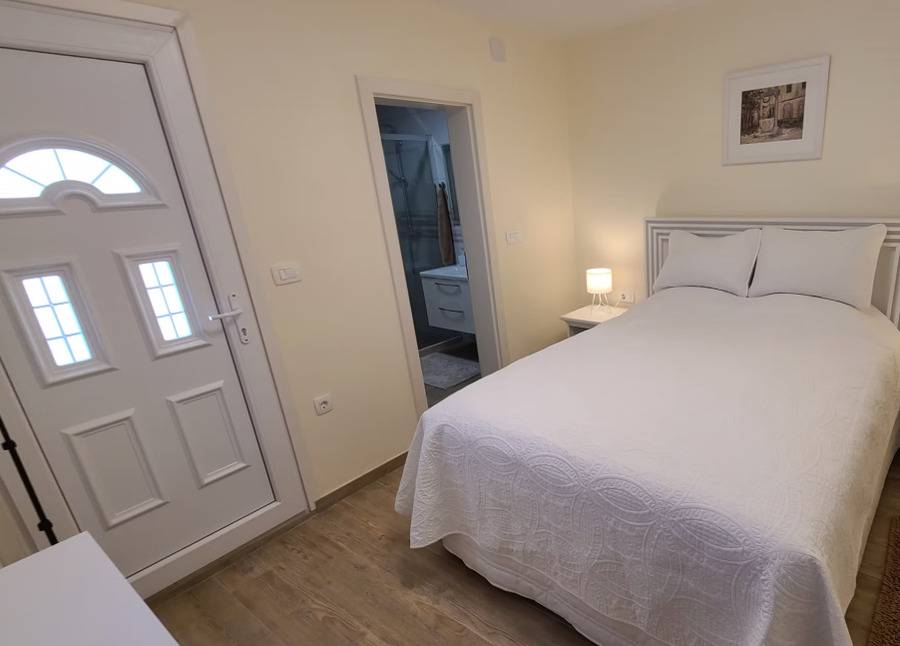 Taxi/Mitfahrgelegenheit, Mietwagen oder andere private Verkehrsmittel. Trsteno liegt an der Küstenstraße D8. Der Parkplatz (Potok 15, 20233, Trsteno, Kroatien), der Sie zum Blue Horizon bringt, befindet sich vor der Hauptkirche des Dorfes, Sv. Vid. Sie können dort einen Parkplatz anfordern oder parken und den markierten Weg zum Strand oder Arboretum entlanggehen. Das Haus befindet sich auf der linken Seite und hat ein eigenes Tor, das zu einer grünen Eingangstür führt.