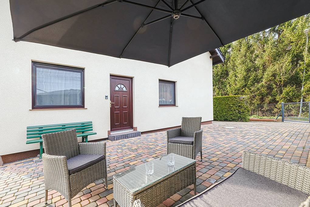 Haus:Großzügige Ferienwohnung (60 qm) in einem schönem Ferienhaus auf einem großen, gepflegten Grundstück. Moderne, schöne Ferienwohnung mit 2 Doppelzimmern, jedes mit Sat-TV (deutsche Programme). Kostenloser Internetzugang über W-Lan. Zentralheizung. Außensitzplatz mit Gartenmöbeln, Grill. 1 Parkplatz auf dem umzäunten Grundstück.