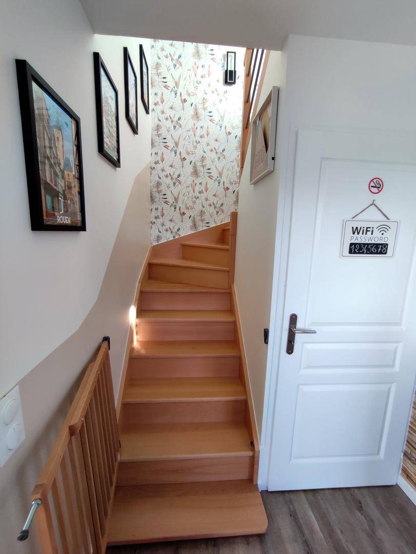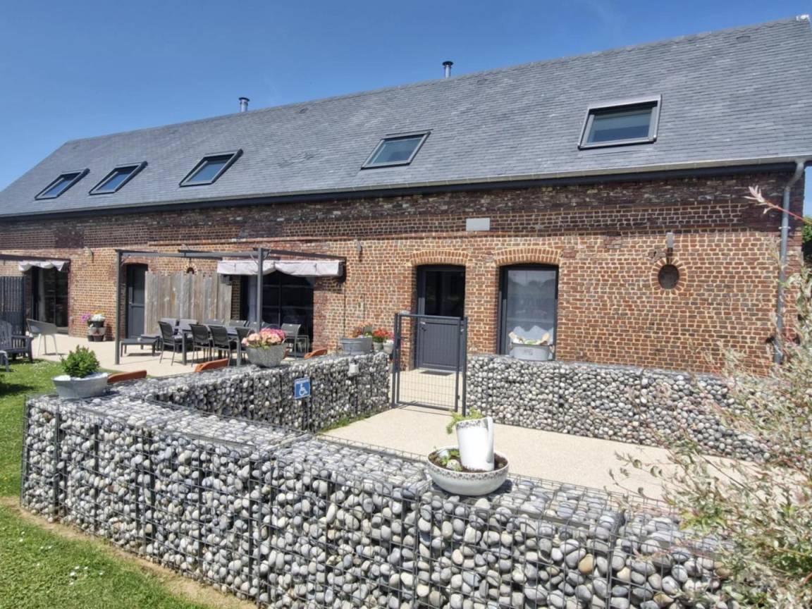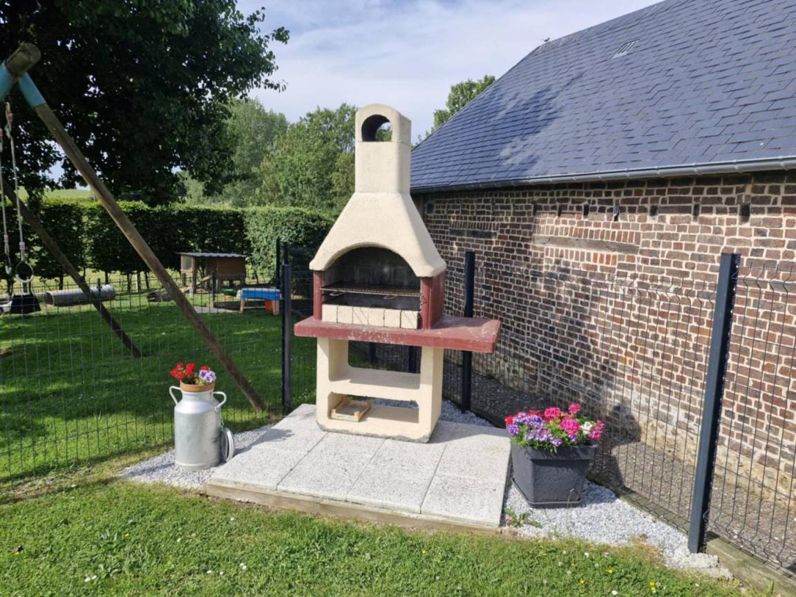 „Rien à redire au logement, propre, très belle déco, chaleur agréable du poêle, rien de manque dans la cuisine et des jeux à disposition. Animaux à l'extérieur que nous avons pu approcher et nourrir. Pleine campagne et proche Etretat.“