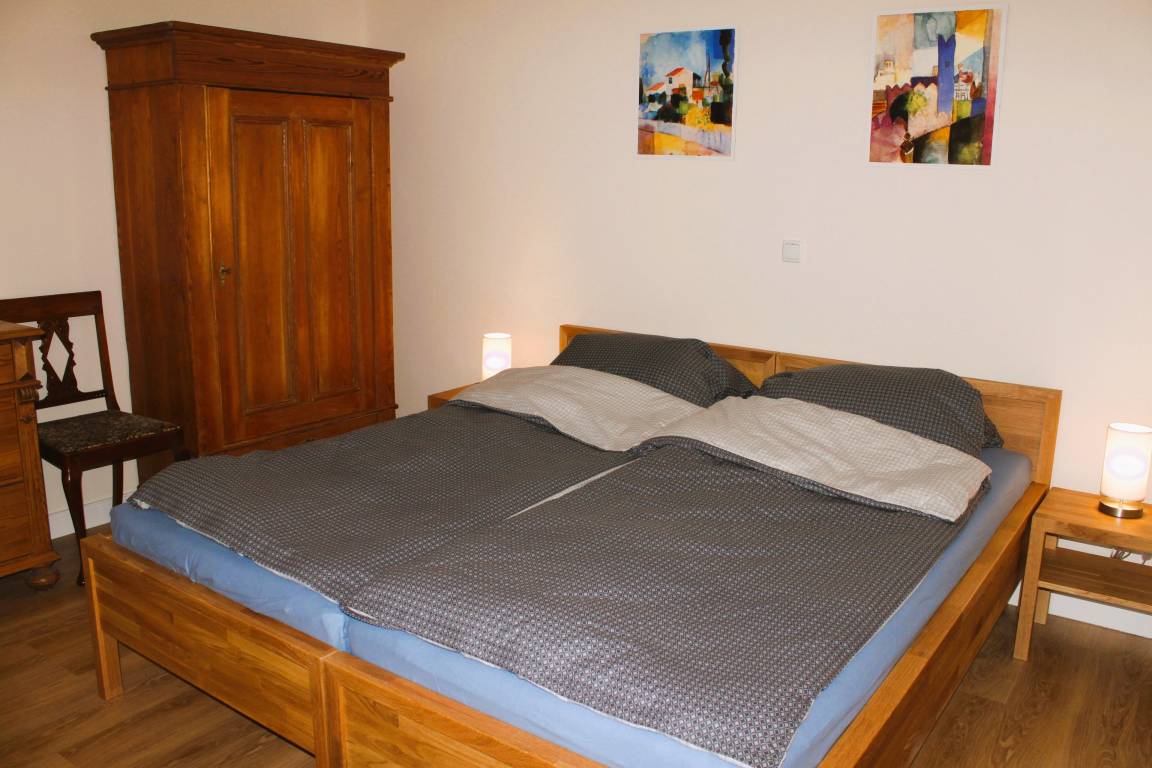 Das Elternschlafzimmer verfügt über ein 180 x 200 cm großes Doppelbett mit zwei Matratzen, das Kinderschlafzimmer ist mit zwei 90 x 200 cm großen Einzelbetten ausgestattet.