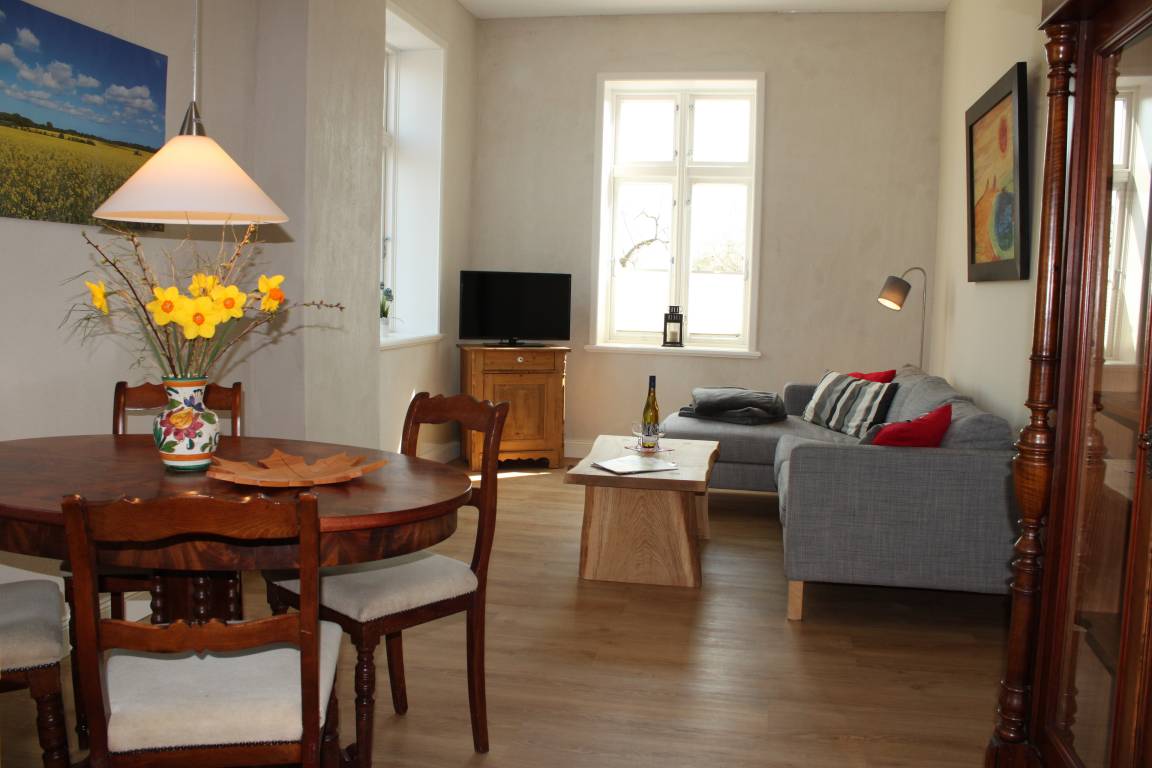 Unsere Ferienwohnung 3 mit dem Namen »Butterfass« bietet mit 64 Quadratmetern Platz für max. vier Personen.