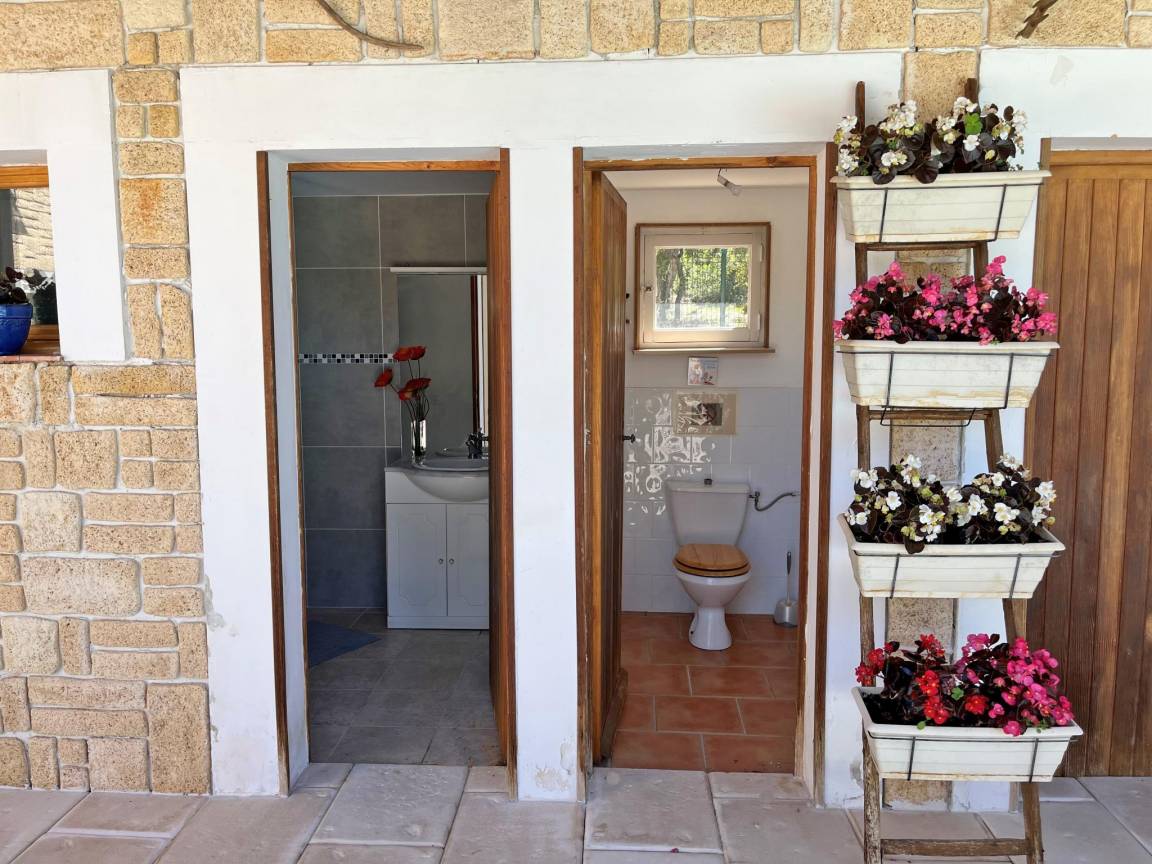 Toilette(von außen erreichbar), Terrasse(alleinige Nutzung, überdacht, illuminiert, 150 m²), Garten(alleinige Nutzung, illuminiert, umzäunt, 2500 m²), Gartenmöbel, Liegen, BBQ(Holzkohle), 4x Parkplatz, Parasol, Pool(alleinige Nutzung, im Garten, Wasseralarm, Abdeckung, 8 x 4 m., Tiefe: 1.4m, geöffnet von Mai bis einschließlich Sep), Boulebahn, 1x Kinderbett (ohne Bettwäsche), 1x Hochstuhl