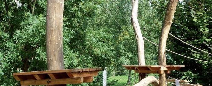 Ein wunderschöner Abenteuerspielplatz mit Trampolin, Naturerkundungen und Tierbeobachtungen