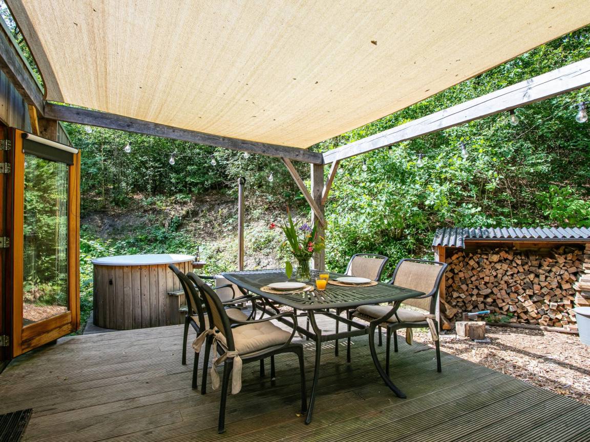 Hottub(feuerbeheizt), Terrasse, Garten(nicht umzäunt), Gartenmöbel