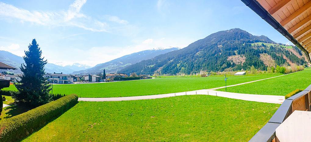 Ort: Uderns. Das Ferienhaus liegt am Ortsrand umgeben von Wiesen. Schöner Blick auf den Golfplatz Zillertal (600 m). Ortsmitte 450 m. Gondel Spieljochbahn 3,6 km. Bahnhof Uderns 800 m.