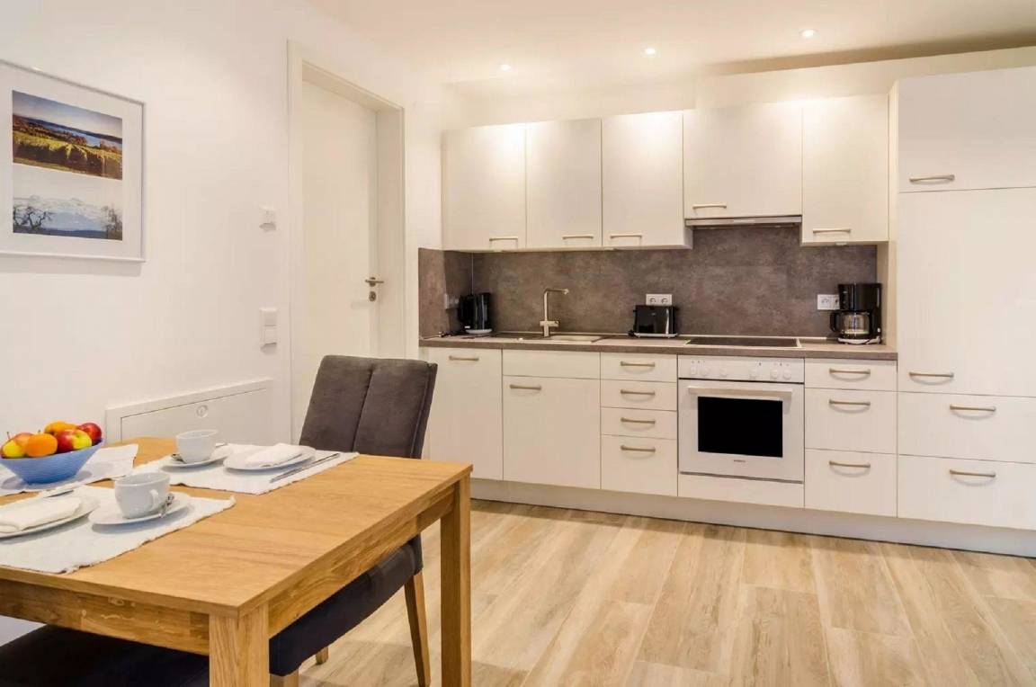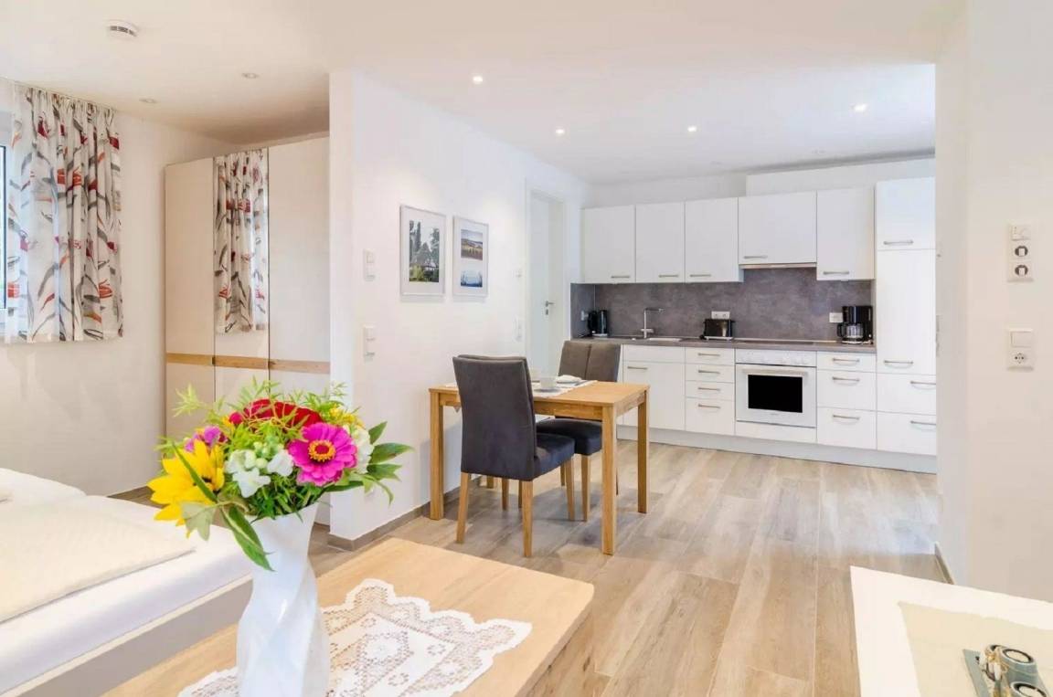 Das Ferienappartement Amber ist die ideale Unterkunft für einen entspannten Aufenthalt. Das 45 qm große Appartement besteht aus einem Wohnbereich mit Zugang auf die eigene Terrasse, einem Schlafbereich u. einer voll ausgestatteten Küche. WLAN, Parkplatz