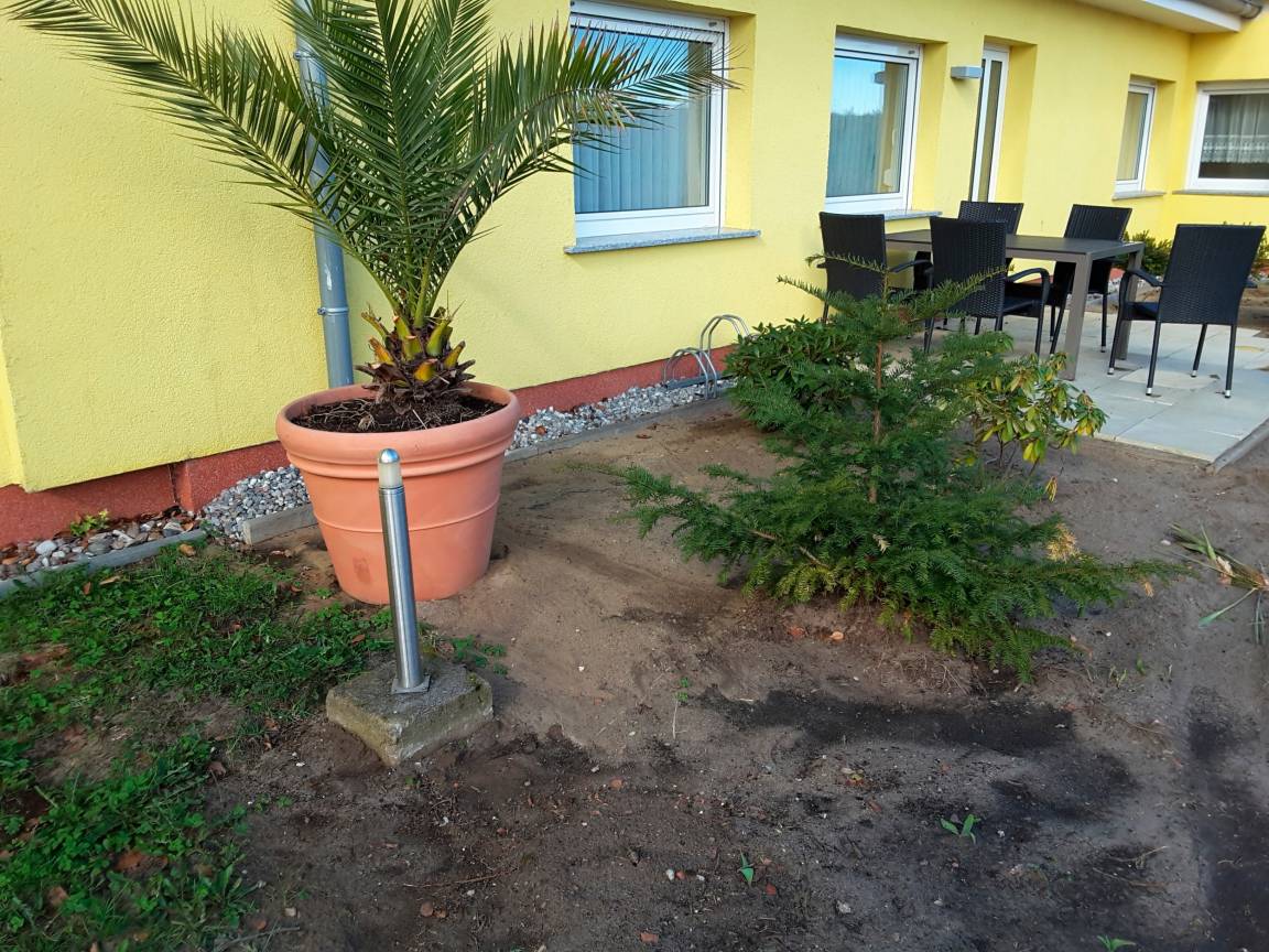 Die im Bodenbereich geflieste Wohnung umfasst 52 m². Eine befestigte Terrasse mit Gartenmöbeln lädt zum Verweilen und Grillen ein.