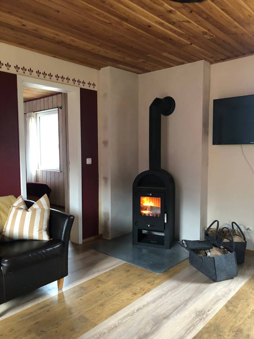 - ein gefüllter Kaminholzkorb mit Anzündholz und Anzünder (Nachschub gegen Gebühr vor Ort erhältlich)