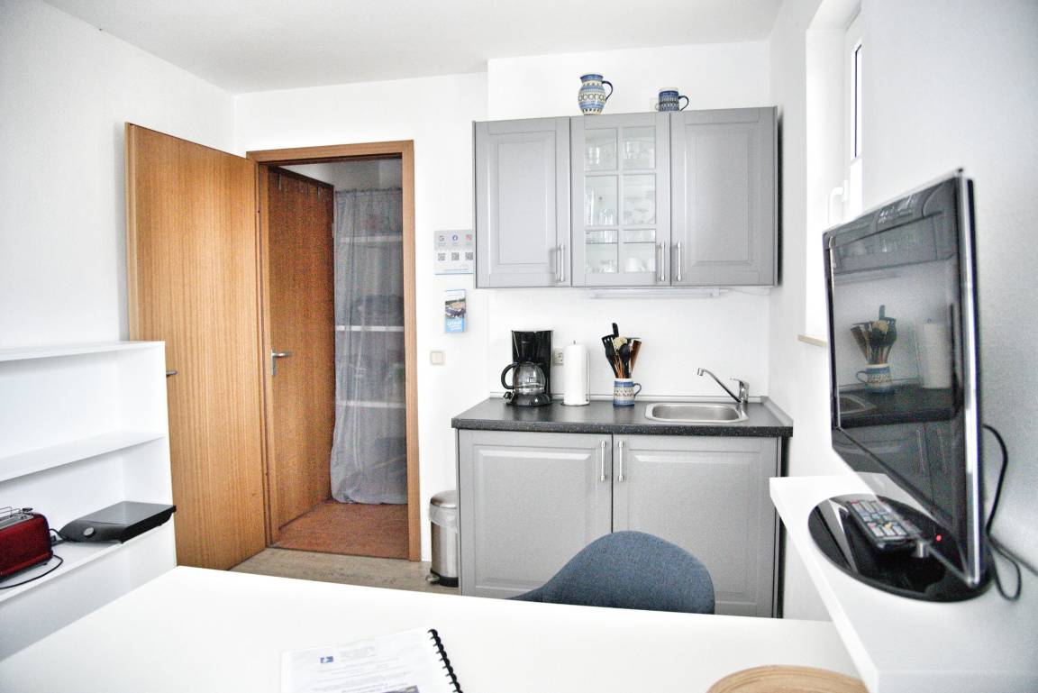Die neue Küchenzeile ist praktisch im Appartement untergebracht. Hier steht Ihnen ein Esstisch mit zwei Bänken zur Verfügung. Multimedial finden Sie hier einen schwenkbaren Flachbildfernseher mit Kabelanschluss vor. Das Badezimmer hat eine Dusche mit Duschkabine und natürlich haben Sie auch hier Ablageflächen. Ihr Badezimmer verfügt über ein Fenster. Das Appartement Stromer liegt im ersten Obergeschoss des Hauses Seestern, im Eingang 1. In unmittelbarer Nähe dieses Appartements befinden sich weiter Ferienappartements unserer Gesellschaft. Eine gemeinsame Anmietung ist hier sehr gut möglich.