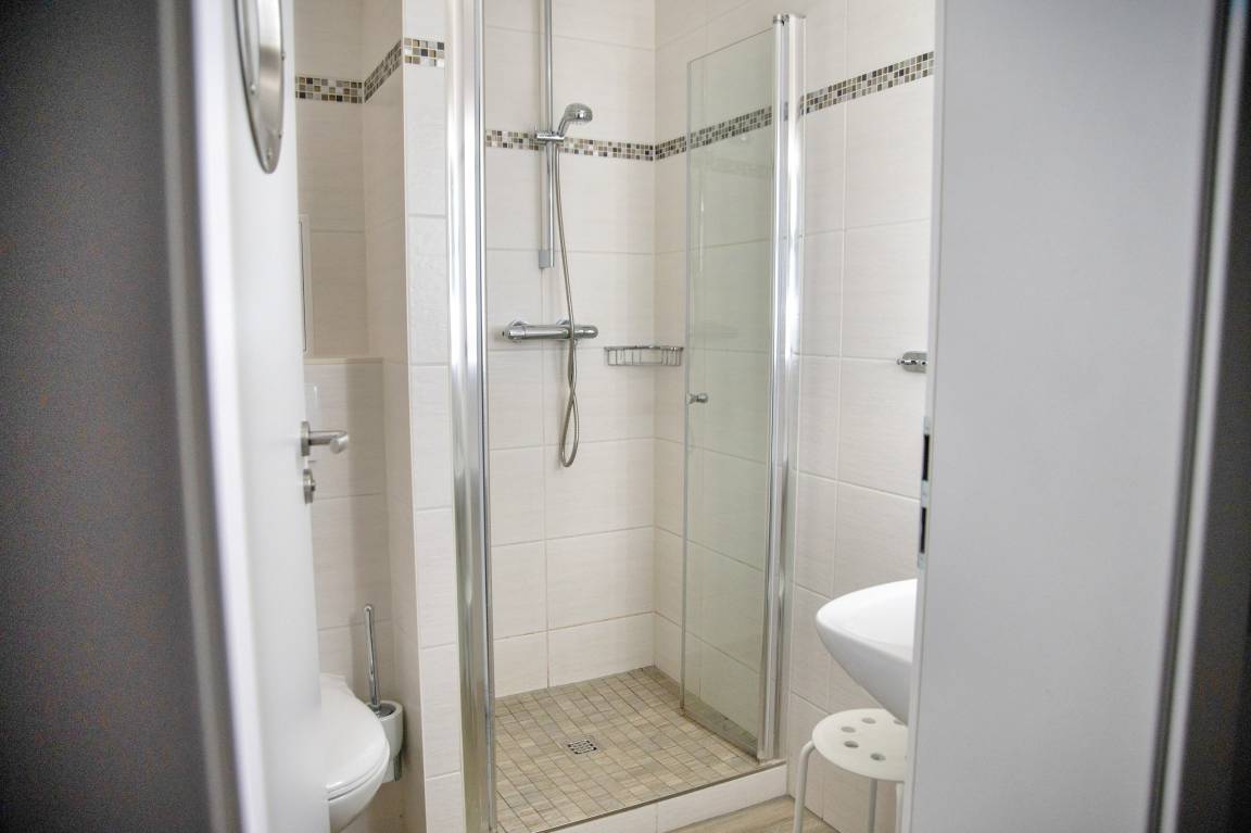 Ihre neue Wohnküche ist zum Wohnzimmer hin offen, was den Raum noch großzügiger erscheinen lässt. Die Sterneküche ist für Sie voll ausgestattet. Bestandteile sind unter anderem Cerankochfeld, Backofen, Kaffeemaschine, Mikrowelle, viel Geschirr, ein Geschirrspüler sowie eine große Kühl- und Gefrierkombination. Das Badezimmer hält eine Dusche mit Duschkabine, Ablageflächen und einen Fön für Sie bereit. Ihre mitgebrachten Utensilien finden hier ausreichend Platz. Im Flur finden Sie eine Garderobe, einen großen Spiegel und Reinigungsgeräte vor.