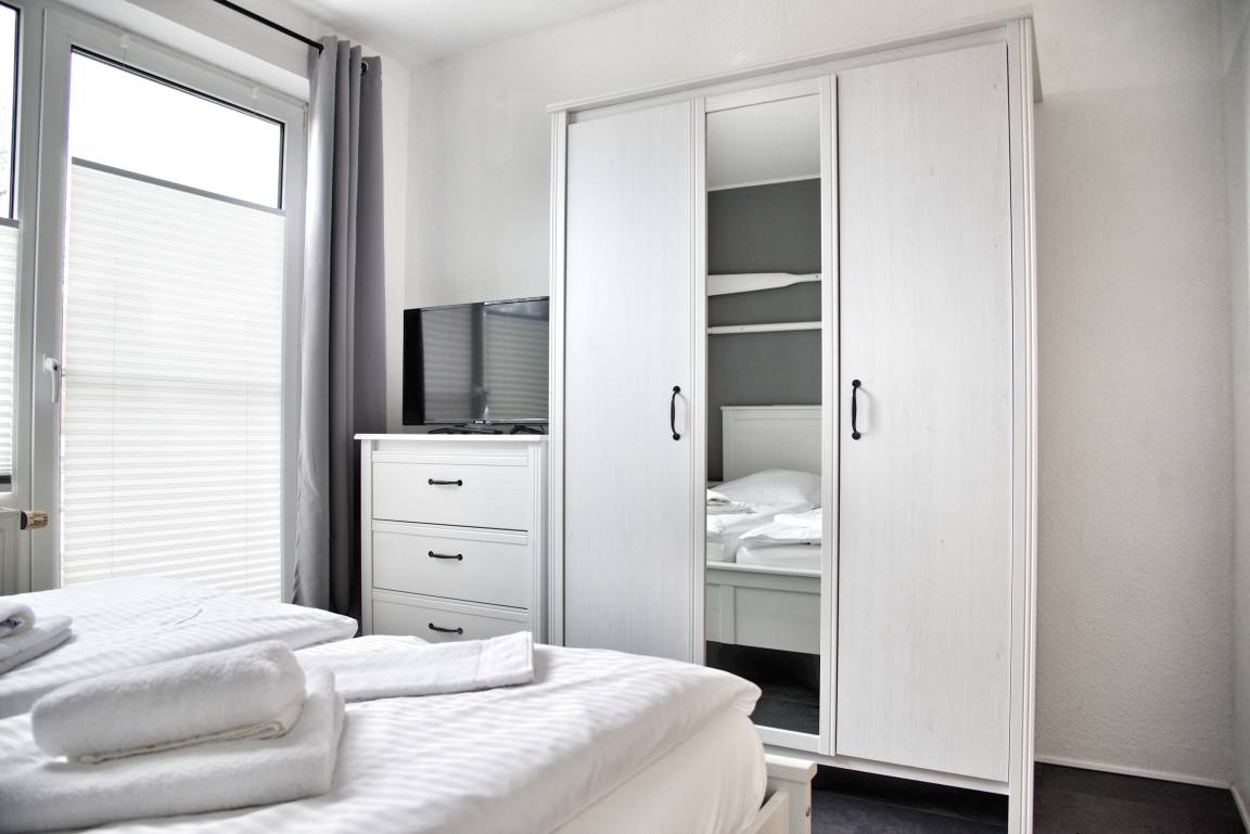 Ihr lichtdurchflutetes Wohnzimmer verfügt über einen Esstisch mit vier Stühlen und über ein ausziehbares Schlafsofa mit einem Schlafplatz für zwei Personen. Ihre Wohnküche ist zum Wohnzimmer hin offen, was den Raum noch großzügiger erscheinen lässt. Multimedial steht Ihnen hier ein großer Flachbildfernseher mit Kabel-TV zur Verfügung. Außerdem bieten Ihnen einige Gesellschaftsspiele Möglichkeiten der Freizeitgestaltung. In Ihrem Schlafzimmer befinden sich ein komfortables Doppelbett sowie ein Kleiderschrank und ein Sideboard. Die Küchenzeile ist voll ausgestattet. Bestandteile sind unter anderem ein Cerankochfeld, eine Kaffeemaschine, ein Backofen, viel Geschirr sowie eine Kühl- und Gefrierkombination. Ihren kulinarischen Ideen sind hier keine Grenzen gesetzt. Ihr Badezimmer hat eine Dusche mit Duschkabine, einen Fön und Ablageflächen. Ihre mitgebrachten Utensilien können Sie hier gut verstauen. Ihr Flur verfügt über eine Garderobe und einen großen Spiegel. Das Appartement Palstek liegt im Erdgeschoß des Hauses Silbermöwe, im Eingang 1. In unmittelbarer Nähe dieses Appartements befinden sich weiter Ferienappartements unserer Gesellschaft. Eine gemeinsame Anmietung ist hier sehr gut möglich.