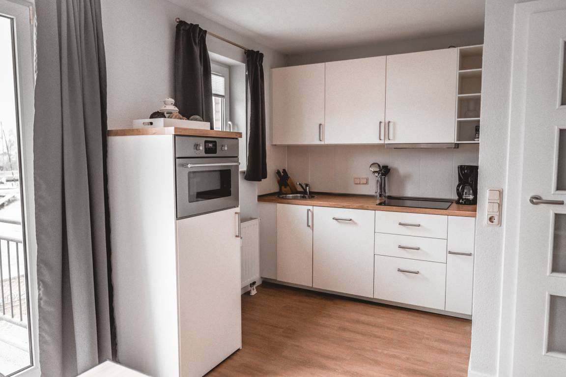 Bei der Ferienwohnung Dione handelt es sich um eine hochwertig eingerichtete, maritim geprägte Nichtraucherwohnung, die sich auf 47 Quadratmetern erstreckt. Sowohl vom Küchenfenster als auch vom Balkon des Wohnzimmers haben Sie einen tollen Blick über das Hafenbecken der Marina. Ihr Balkon ist mit vier Stühlen, einem Tisch und einem Sonnenschirm ausgestattet.