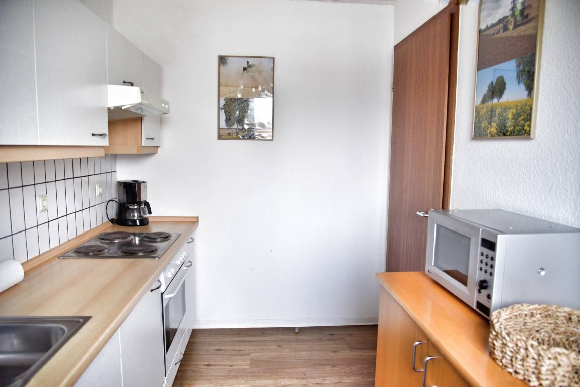 Ihre Einbauküche ist für Sie voll ausgestattet. Bestandteile sind unter anderem Elektrokochfeld, Backofen, Kaffeemaschine, Mikrowelle, viel Geschirr, ein Kühlschrank mit kleinem Gefrierfach und vieles mehr. Ihr Badezimmer hält eine Duschkabine, Ablageflächen und einen Fön für Sie bereit. Ihre mitgebrachten Utensilien können Sie hier gut verstauen. Im Flur finden Sie eine Garderobe, einen großen Spiegel und Reinigungsgeräte vor.