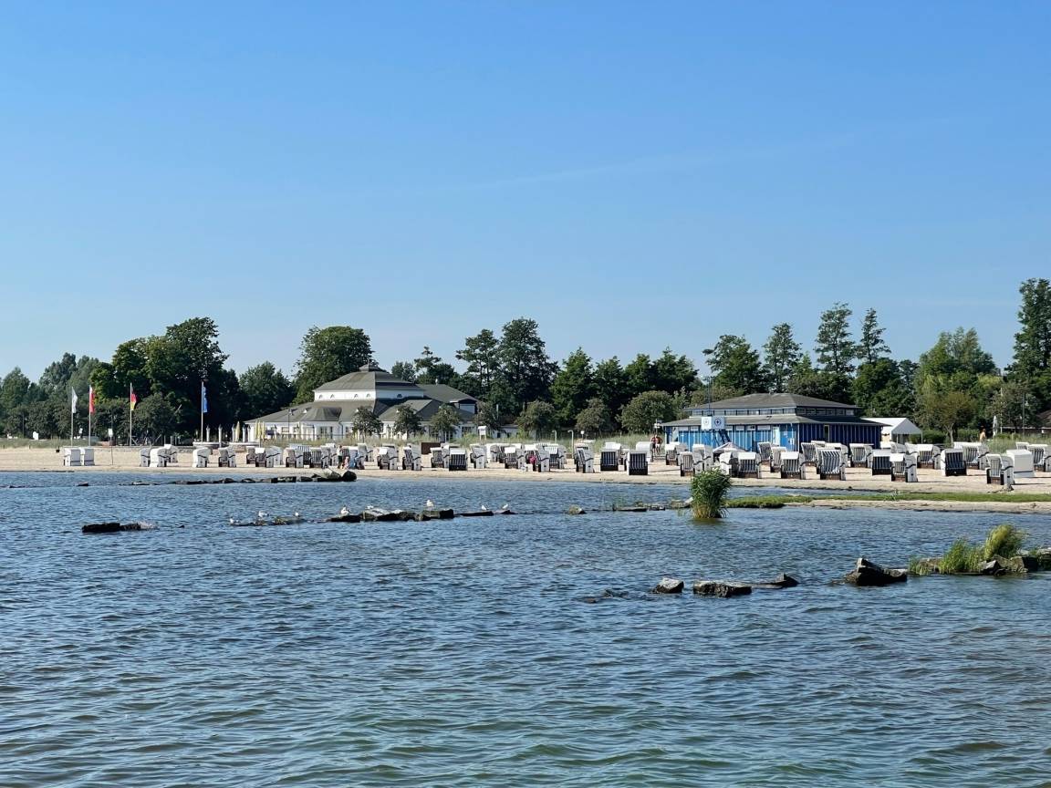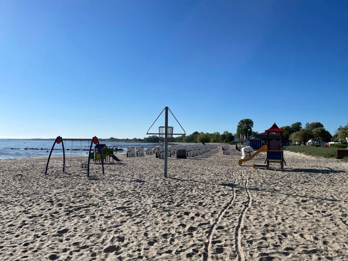 Der Strand hat eine Breite von knapp 500 Metern. Hier finden Sie Ihren Lieblingsplatz. Es gibt einen geschützten FKK-Bereich, Strandkörbe und Gastronomie. Auch für Ihre Strandmuscheln und Ihren Sonnenschirm ist hier stets genügend Platz. Der flache Strand ist ein Paradies für Kinder. Nach dem Badespaß können Sie den herrlichen Spielplatz erobern.