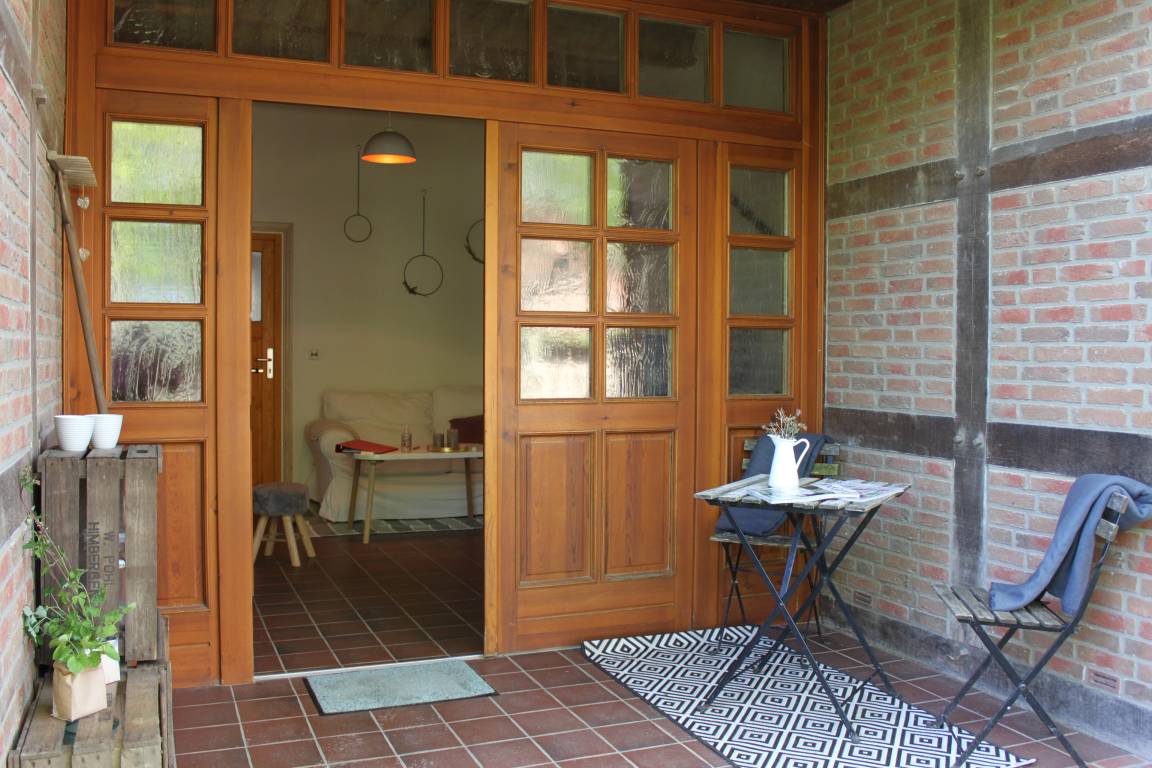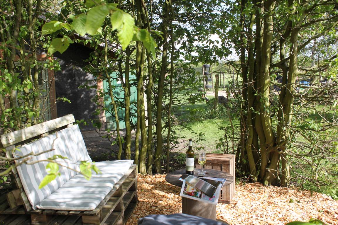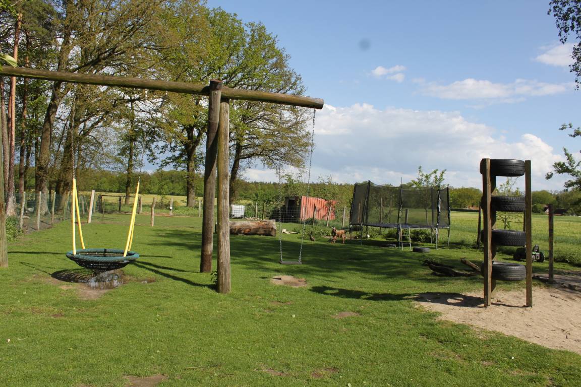 Direkt vor dem Eingang befindet sich ein kleiner überdachter Sitzplatz. Machen Sie es sich auch in der Weidenlaube gemütlich und entdecken Sie den Hof. Je nach Saison sind Kartoffeln, Eier, Marmeladen usw. auf dem Hof erhältlich. Kinder werden sich über den großen Spielbereich freuen, der auch von den Tageskindern auf dem Hof genutzt wird. Die Hühner, Enten und Ziegen freuen sich auch über Besuch. Hofhund Alma (Heideterrier) läuft Tag und Nacht auf den Hof umher und wird Sie sicherlich auch freundlich begrüßen.....
