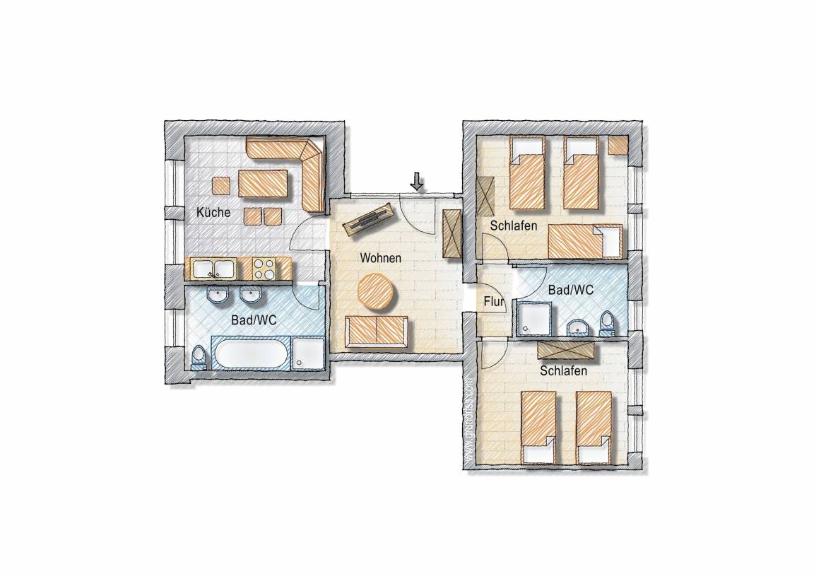 70 m² Ferienwohnung ∙ 2 Schlafzimmer ∙ 6 Gäste