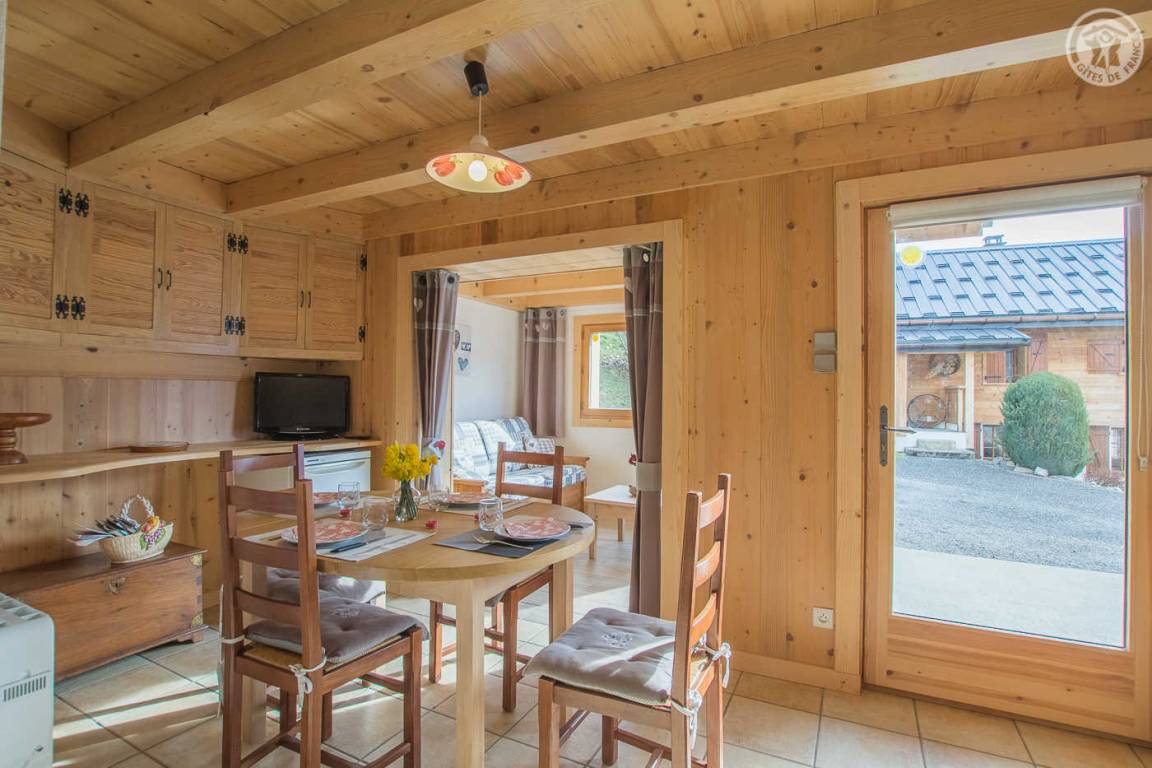 Ferienwohnung im Haus des Eigentümers. Erdgeschoss: Wohnküche, Wohnzimmer (1 Schlafsofa für 2 Personen), WLAN-Verbindung, 1 Schlafzimmer (1 Doppelbett 160 x 200 cm, 2 Etagenbetten), Badezimmer (Dusche). Balkon + Terrasse. Gemeinsamer Innenhof. Skigebiet Flumet/Espace Diamant 12 km, Crest-Voland 13 km, Notre Dame de Bellecombe 14 km. Gewässer mit Flumet-Freizeitbasis ausgestattet.