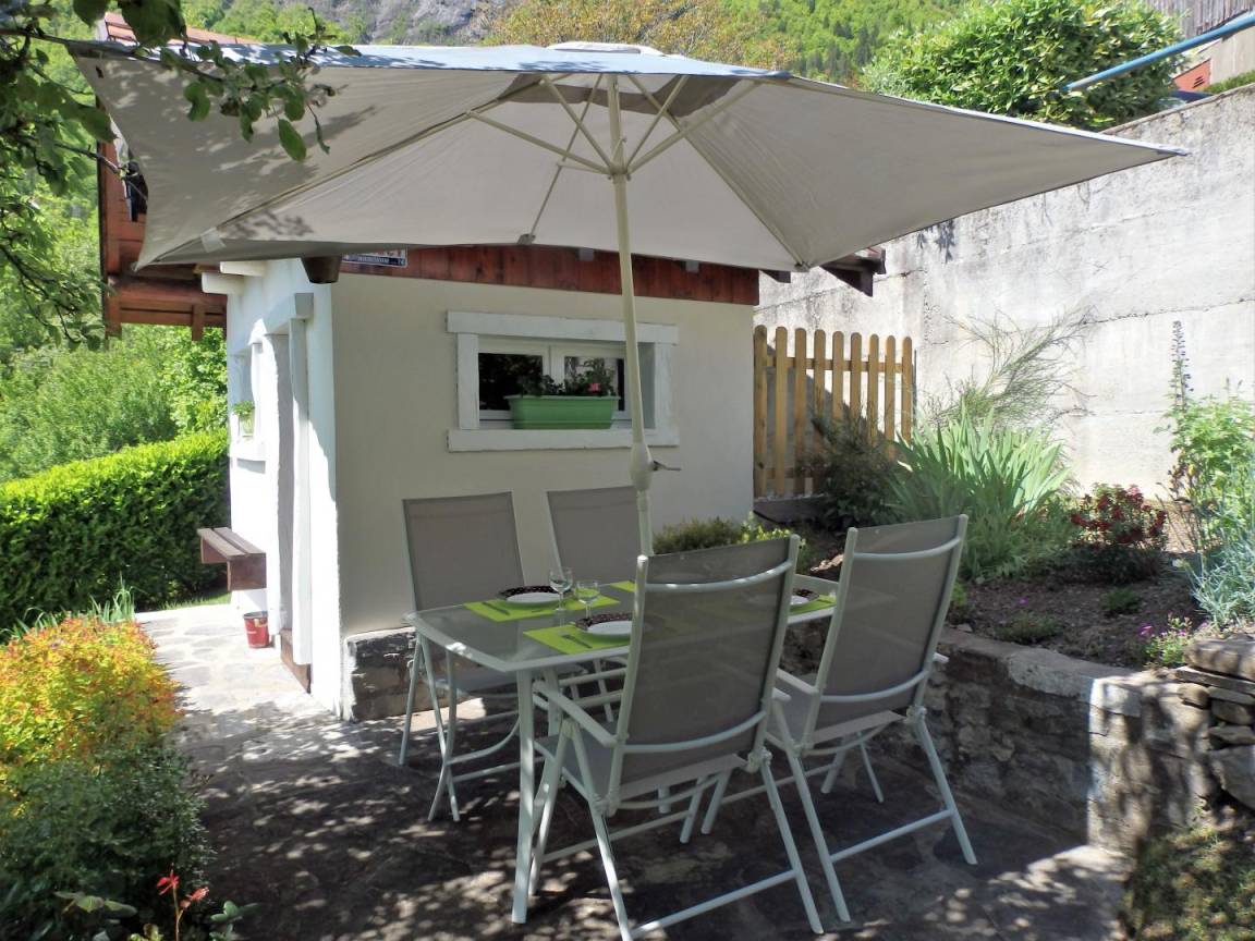 Ferienwohnung im Haus des Eigentümers. Erdgeschoss (separater Zugang über eine Treppe in den Garten): Wohnküche mit Sitzecke (Doppelschlafcouch), Sat-TV, WLAN, 1 Schlafzimmer (1 Doppelbett) mit eigenem Bad (Dusche/WC). Private Terrasse. Eingezäunter Garten. Skigebiet Flumet/Espace Diamant 18 km, Crest-Voland 20 km. Strand am Lac d'Annecy 23 km. Schwimmbad 4 km.