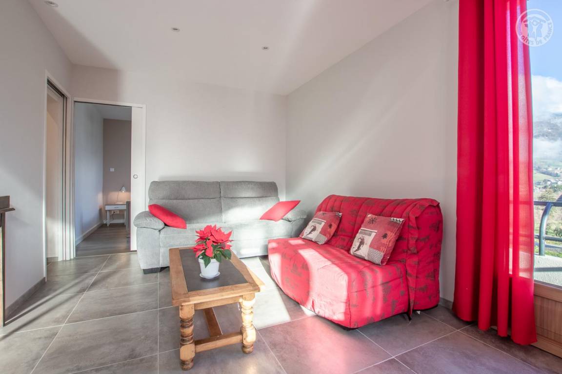 Wohnung im Haus der Besitzer. Unabhängiger Eingang, Zugang über ein paar Stufen. Erdgeschoss: Küche - Wohnzimmer - Wohnzimmer mit Zugang zu einem Balkon - Terrasse, 2 Schlafzimmer (1 Doppelbett 140x190 cm / 2 Einzelbetten 90x190 cm), Duschbad, WC, Abstellraum. Überdachter Whirlpool. Abstellraum für Fahrräder und Skier. Privatparkplatz 10 Meter entfernt.