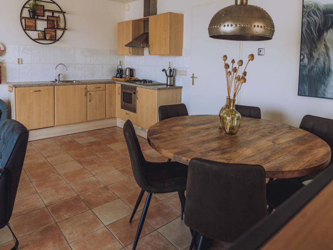 Layout : Parterre: Wohnzimmer mit TV(Kabel, Flatscreen, Niederländische TV-Kanäle, Deutsch Fernsehsender, internationale TV-Kanäle), Esstisch, Sitzecke, DVD-Player, Radio, CD-Spieler , Küche mit Kochplatte(4 Kochplatten, Gas), Wasserkocher, Dunstabzugshaube, Kaffeemaschine(cups), Kaffeemaschine(Filter), Kombi-Mikrowelle, Geschirrspüler, Kühl-/Gefrierkombination , Schlafzimmer mit 2x Einzelbett(Boxspring, 90 x 200 cm) , Schlafzimmer mit Etagenbett(90 x 200 cm) , Schlafzimmer mit Etagenbett(90 x 200 cm) , Badezimmer mit Badewanne oder Dusche, Waschbecken, Toilette , Toilette mit Toilette , Waschraum mit Wäschetrockner, Waschmaschine